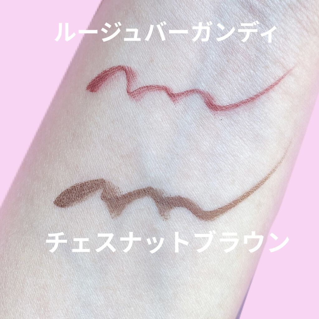 高発色がかなりいい!インクの密度も高い。 ブラウンすきずブラックすぎない程よい垢抜け感のあるカラーも素敵です💓 滲みにくく汗や摩擦に強いので朝から晩まで直しなしでも続く高発色。 まつげや瞼に優しいケア成分も配合してるみたいなので、目元に優しいアイテムです。