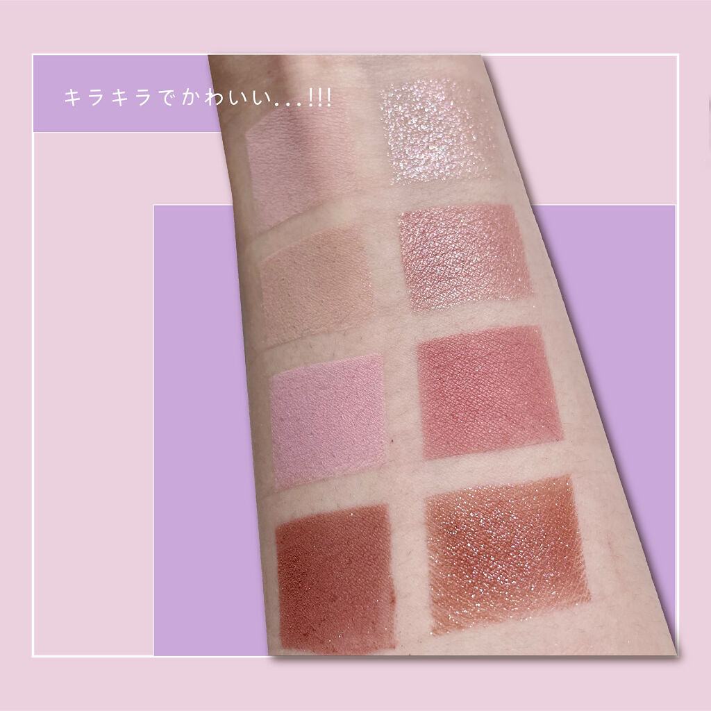 ロゼピンク系のカラーが配色されたパレット! マットもラメも入ってるし、10色もあると色々なメイク出来ると思います。 使いやすい感じのナチュラルな色味の配色になっててほわっとしたピンクメイクになって可愛い🩷 このシリーズほんと可愛いし、持ってないパレットも欲しいな〜