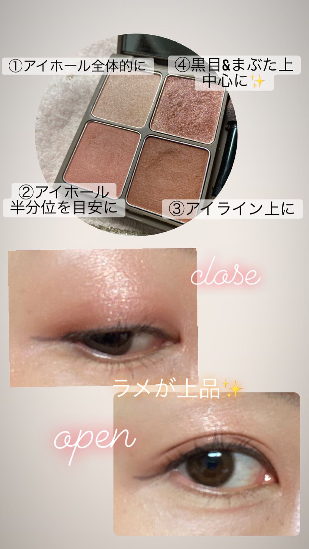 - 2021年3月15日(月)予約販売開始 色×光×質感を1つに詰め込み、毎日のアイメイクのバリエー ションを膨らませる4色のアイシャドウパレット。 ・発色・質感を調整しやすいチップ&ブラシ ふんわり仕上げたいときはブラシ しっかり発色させたいときはチップを その日の気分に合わせたアイメイクが楽しめる ・ 毎日のメイクが楽しくなる4つのカラー ・こだわりの3つの質感 シマー・プリズム・マットのテクスチャー それぞれのカラーがしっかり色づきピタッと密着 ●保湿美容液成分:セラミド・ヒアルロン酸・モモ葉エキス 配合。 ●ミラー・チップ&ブラシ付き。