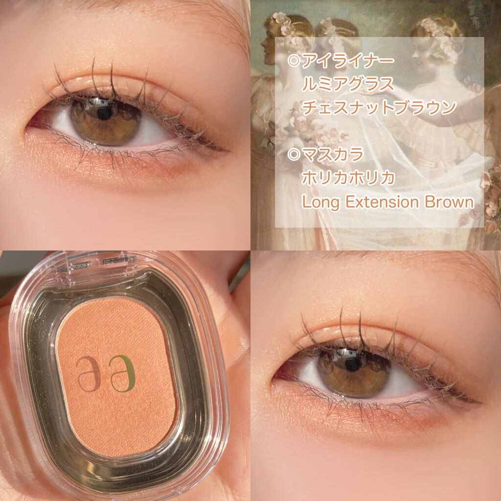 アイシャドウをグラデーションにするときに濃淡に気をつける。 アイラインはぶつっと途切れさせない! マスカラの色も重要で、ブラウンのマスカラを普段使っている方は少し赤みのあるブラウンマスカラを使ってみると、目元に自然な血色感がでてとってもおすすめです!