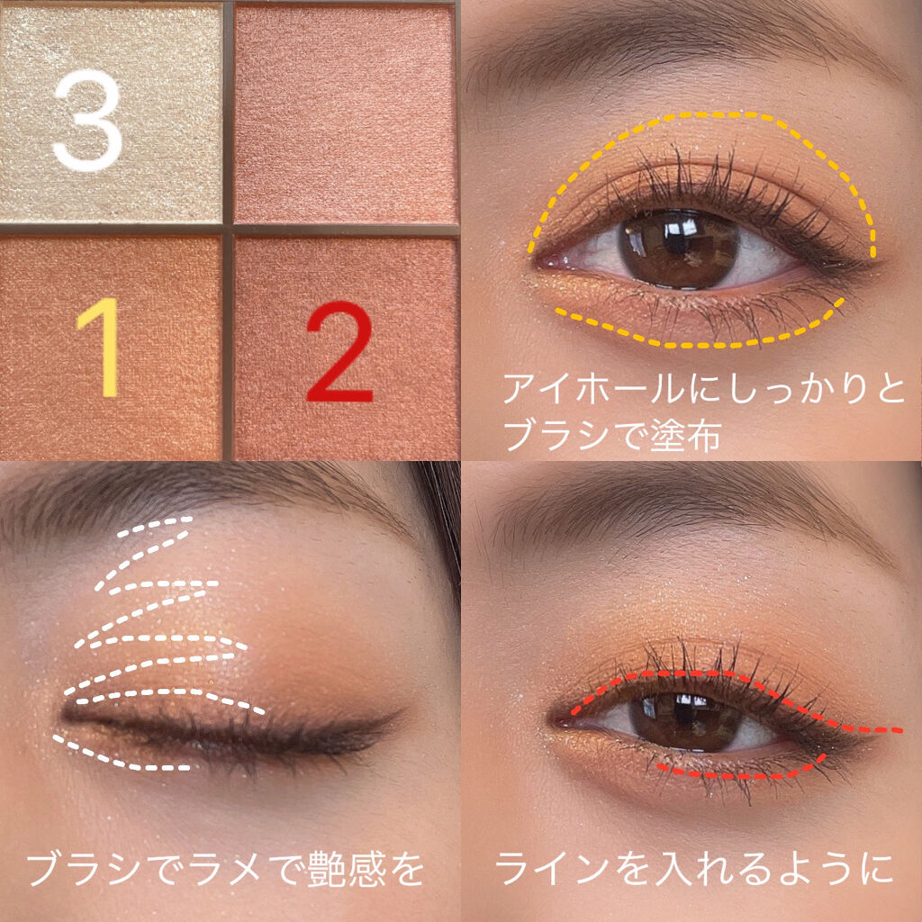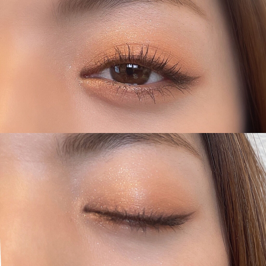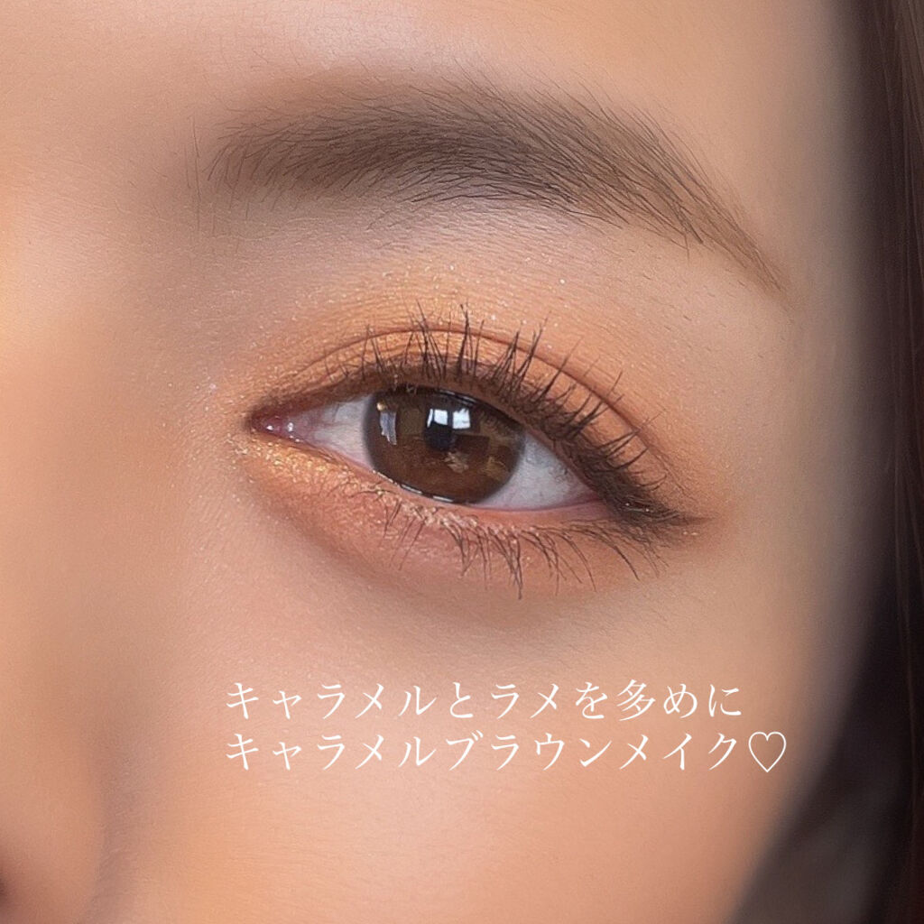 全体的に淡めです! イエベ向きな黄色みのあるブラウン系🤎 シマーなラメが可愛すぎる!! 密着度の高いラメでポンと乗せるだけで キラッキラ✨✨ 粉飛びもしないです! 発色はいいですが淡いので 初心者さんでも使いやすい!!!