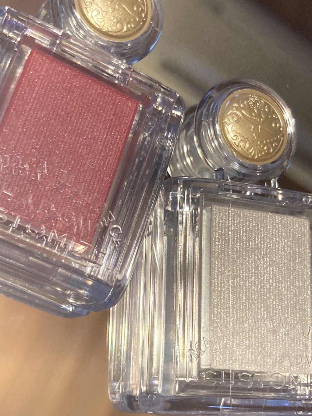 MAJOLICAMAJORCAシャドーカスタマイズPK421貴婦人WT963光る樹液¥550【色味】貴婦人はビビットな青みピンクです。塗ってみると瞼の輪郭はふわっとするのに目がくっきり見える色です。光る樹液はメタリック感のあるホワイトカラーで...