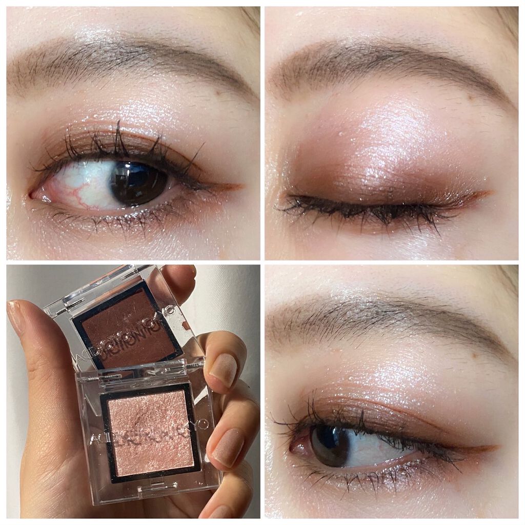 ボビイブラウンの名品ムーンストーンはベースがクリアなのでどんなアイシャドウにも合わせられるし上からトッピングするのにも向いています。 アディクションのマリアージュは2,200円でこの煌めき! 一番安いのに一番輝く、さすがです。 秋蛍は実はトッピングするとベースのシャドウを殺してしまうので目頭、下瞼などポイント使いかベースに使うのがおすすめです。