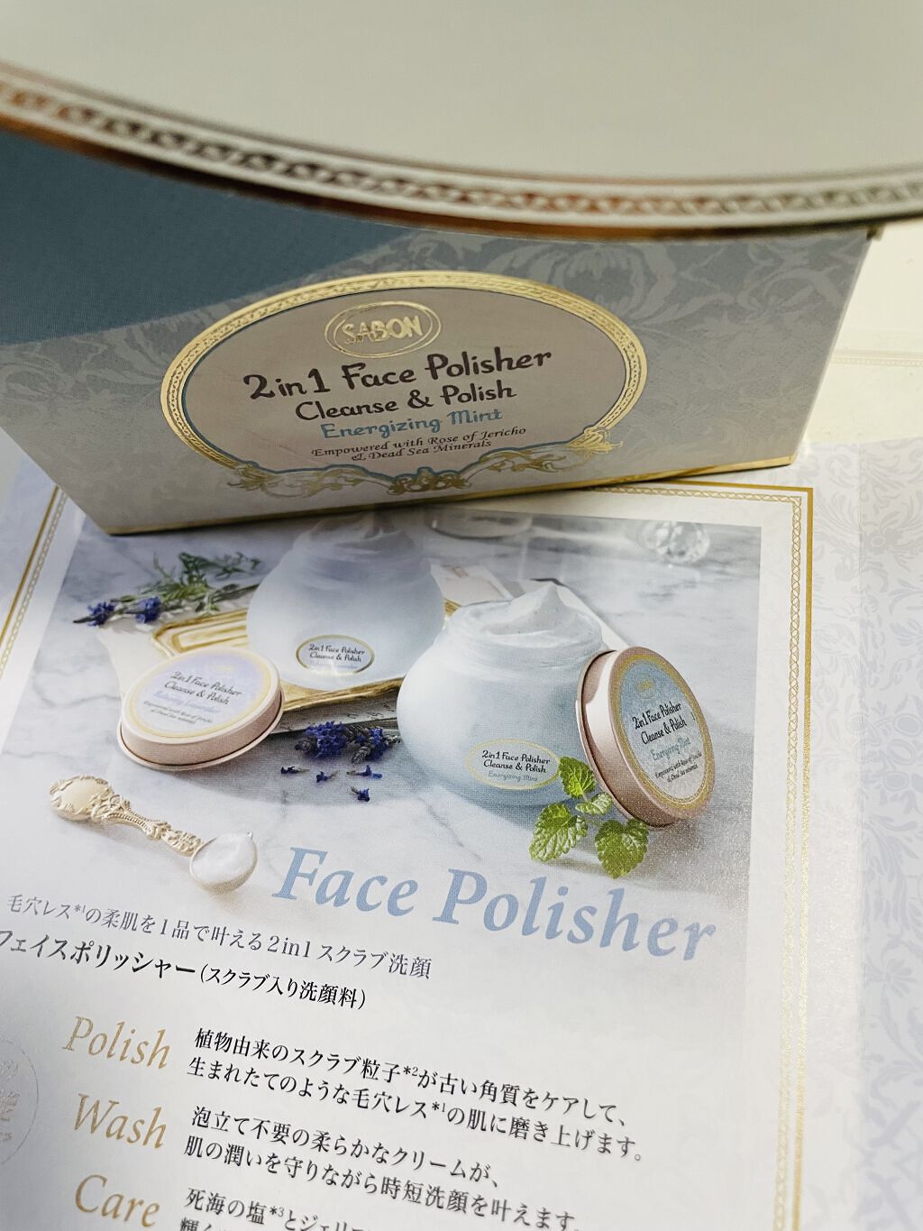 SABONフェイスポリッシャーlips通してSABON様より頂きました。軽いミントの香りのスクラブ洗顔です。ビックリしたのが、洗ったあとの肌のサラサラ感です。もちろん突っ張り感もありません。チェリー粒大で、1分間クルクル全顔マッサージしてから...
