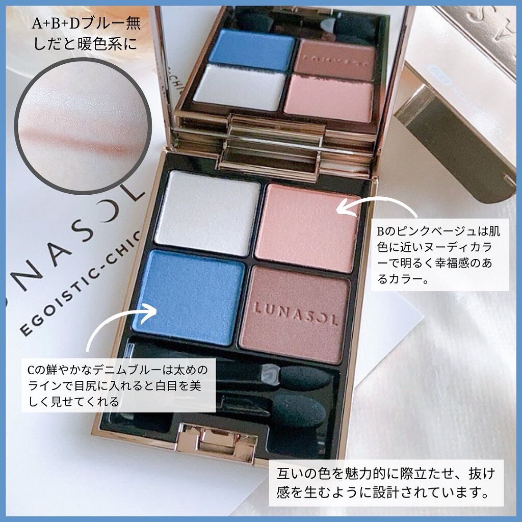 \目元の立体感を演出する/ルナソルアイカラーレーションN0412℃signsofspringブルーとベージュのニュアンスカラーの重なりが何とも美しいアイシャドウ✨温度感と質感の違う4色が印象的な目元へと導く🤝繊細なラメ感が美しく、どこまでも透...