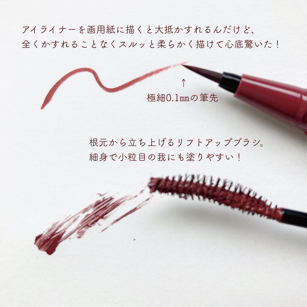 お湯+洗顔料でオフできるのに汗・水に強く、ダマになりにくくデイリーに使いやすい🙆♀️ 使用カラー:「ルビーブラウン」 甘すぎないくすみピンクで、可愛いもかっこいいも演出できる😎 ウォータープルーフタイプなのに、通常洗顔で簡単オフできるスグレモノ!なめらかな書き心地も使いやすくて◎