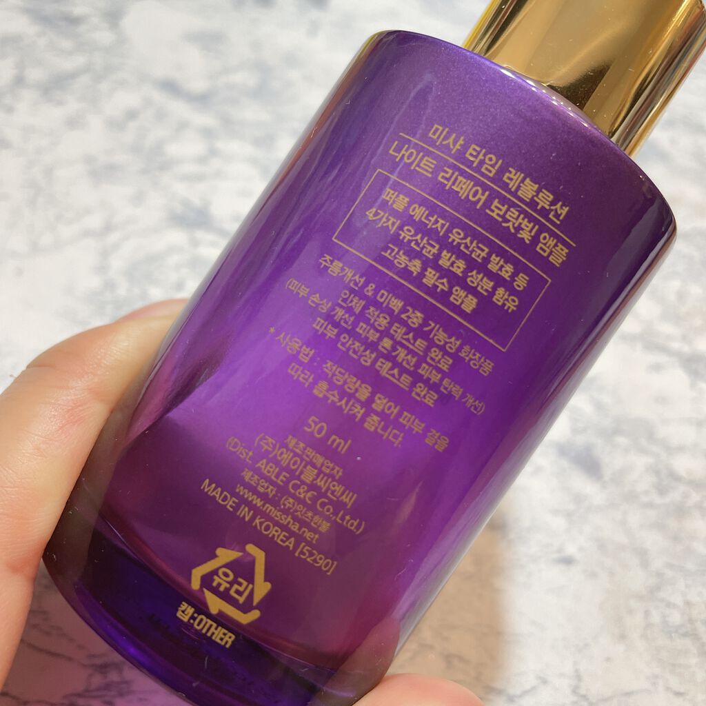 とろみのある茶色の液体。肌馴染みは良い。 ハーブ系のいい香り。私は好き。 エイジングケアもできる(多分) ナイトリペアアンプルと書いてあるけど、朝使ってもいい。 単品だと正直安くはない。導入化粧水と共に、ベストセラーセットで買う方が得だとは思う。 現品購入の前に、何らかの形で試した方が良いとは思う。値段もそうだし、香りの好みに合うかを見てみると良い。 とろみはあれど肌馴染みもよく、香りも好きなものだったので、そのお試し使用で現品購入を決めた。 今は別の美容液(サンプル)を使用しているが、これに戻す予定。夜用美容液のスタメン入り。 安くは無いので、これより良くて、安い美容液があった場合は乗り換えるかもしれない。が、それまではリピ確定。しばらくお世話になります。
