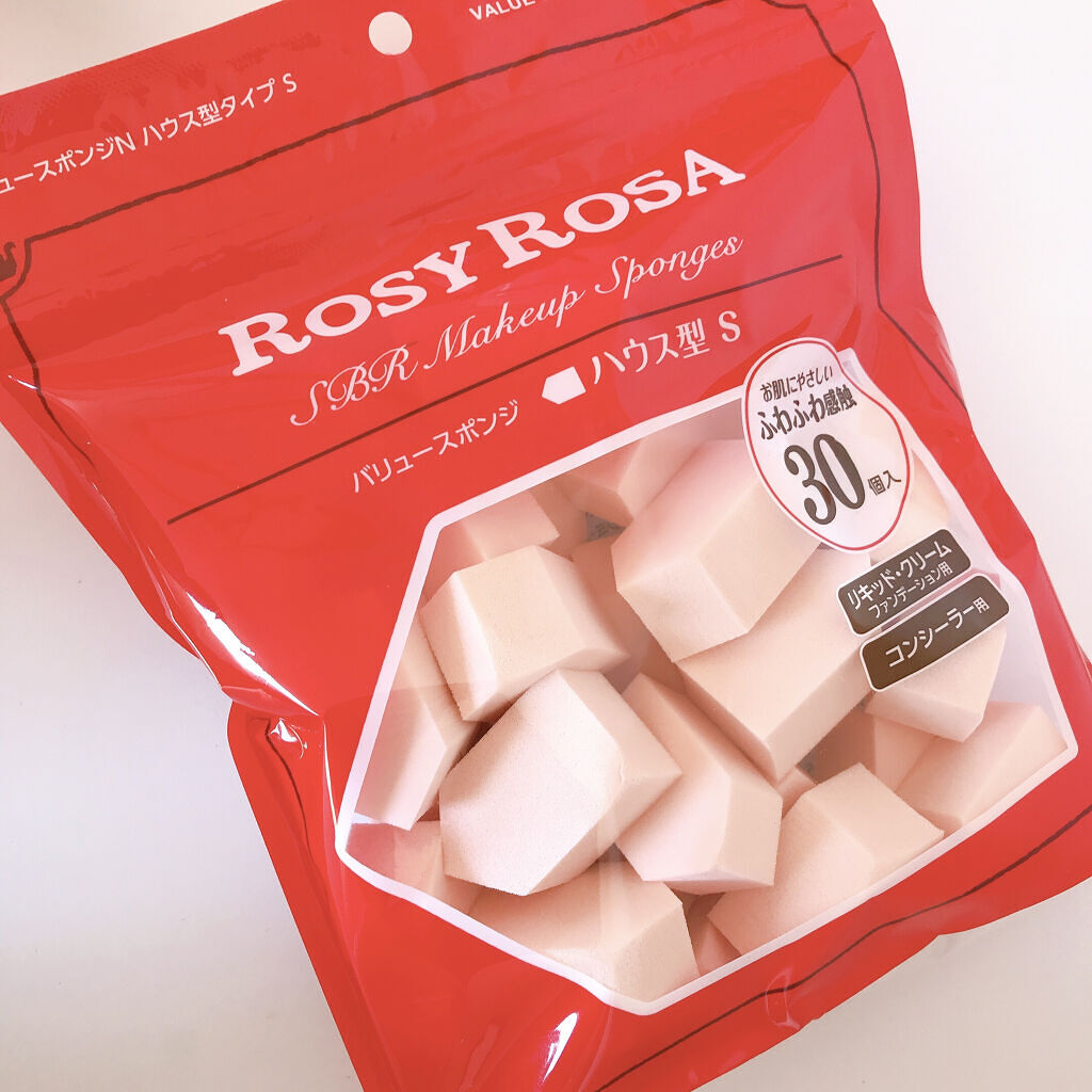 ロージーローザのバリュースポンジN ハウス型タイプS 30Pは、角がたくさんあるので、細かいところから広いところまで、綺麗にメイクできますよ。 さわり心地が気持ちよくて、ふわふわなので、肌にも優しい感じがします! 洗うのめんどいし、毎回綺麗なスポンジでメイクするのがいいので、使い捨てを選んでいます。