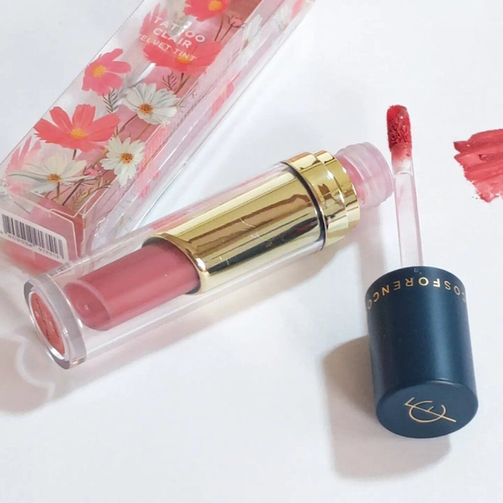 フォレンコスベルベットティント30パケも可愛く高級感あり持ってるだけでも可愛い!!1度塗ったらなかなか落ちないのでオススメマットティントです!乾燥もあまり感じられなくポロポロ感はないです!クレンジングでも1度では落ちないのでちょっと大変💦#韓...