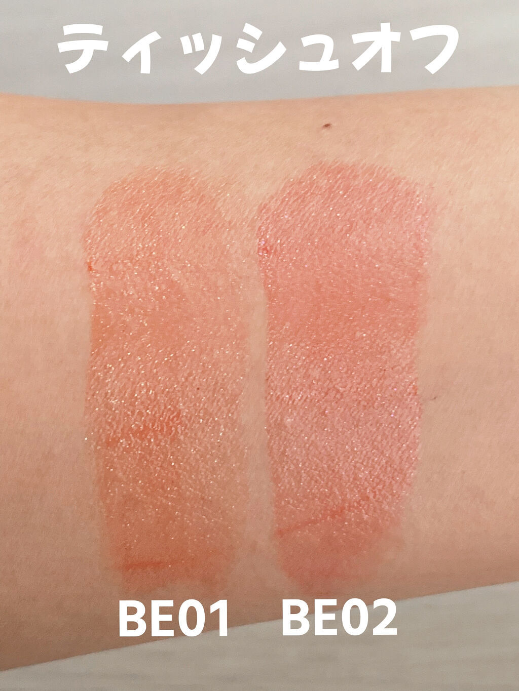 ラメがめちゃくちゃ可愛いA’pieuのジューシーパン スパークリングティント。BE01のときめくイチジクはベースがベージュ系のナチュラルカラーでゴールドやホワイト系のラメが入っています! 普段から濃いめのリップが好きな方は物足りないと感じると思うので、こちらを全体的に塗った上に内側に濃いめのリップ塗ってもとても可愛く仕上がります🫶🏻 ティント効果もあって、ティッシュオフするとツヤ感は失われるものの色とラメはしっかり残ります!