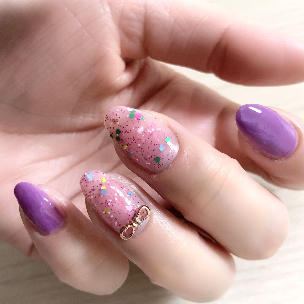 まずベースを塗ってから トップコートを塗り (使用してるものはこれ一本でOK) トップコートを塗ったら半乾きの状態で 指or使い捨てアイシャドウチップ等使用して アイシャドウをポンポンと塗ります。 塗り終えたら更にトップコートを塗って 半乾きの状態でアイシャドウを… アイシャドウ塗っただけだと、ん? ってなるけど、上からトップコート重ねると パールやラメやツヤ感が出て綺麗✦ฺ