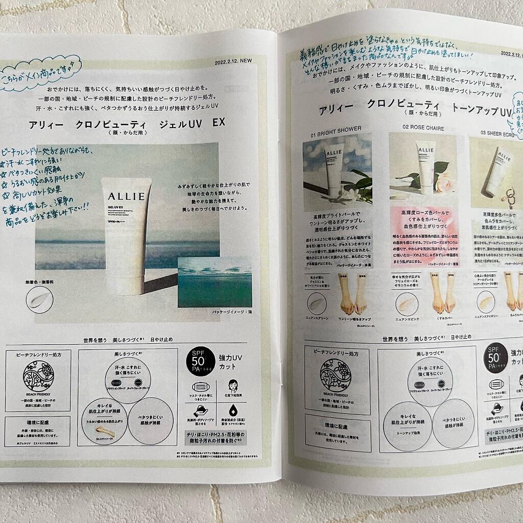 - 世界を想う 美しさつづく*1 日やけ止め おでかけには、落ちにくく、気持ちいい感触がつづく日やけ止めを。 一部の国・地域・ビーチの規制に配慮した設計のビーチフレンドリー処方。 汗・水・こすれにも強く、ベタつかずうるおう仕上がりが持続するジェル UV ●一部の国・地域・ビーチの規制に配慮した設計の「ビーチフレンドリー処方」 ●SPF50+・PA++++ ●汗・水 こすれに強く落ちにくい フリクションプルーフ・スーパーウォータープルーフ ●ベタつきにくい感触がつづく ●うるおい感のある肌仕上がりがつづく ●環境に配慮した素材を使用したパッケージ採用 ●美容液成分(保湿)ヒアルロン酸Na配合 ●顔・からだ用 ●洗顔料・ボディーソープで落とせる ●マスク・タオル等につきにくい ●化粧下地効果 ●無香料・無着色 ●チリ・ほこり・PM2.5・花粉等の微粒子汚れの付着を防ぐ*2 *1 スキンケア効果またはメイクアップ効果による肌仕上がりのこと *2 チリ・ほこり・PM2.5・花粉等すべての微粒子汚れの付着を防ぐわけではありません <限定セットA:セット内容> ・アリィー クロノビューティ ジェルUV EX 90g ・アリィー クロノビューティ ラスティングプライマーUV 5g ※セット商品の成分につきましては各商品ページでご確認ください。