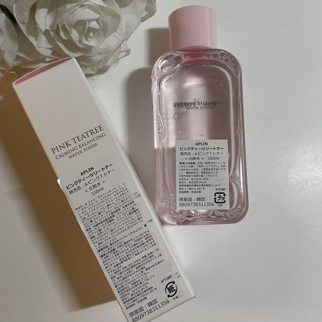 𖧷淡いピンク色がかわいいコレ☝️さすが韓国コスメ!!!アプリンのピンクティーツリートナーです💕このピンク着色じゃなくって天然成分のビタミンの色なんだって💕💕💕とろみはなく、さっぱりとしたお水のようなつけ心地の化粧水でお風呂あがりや洗...