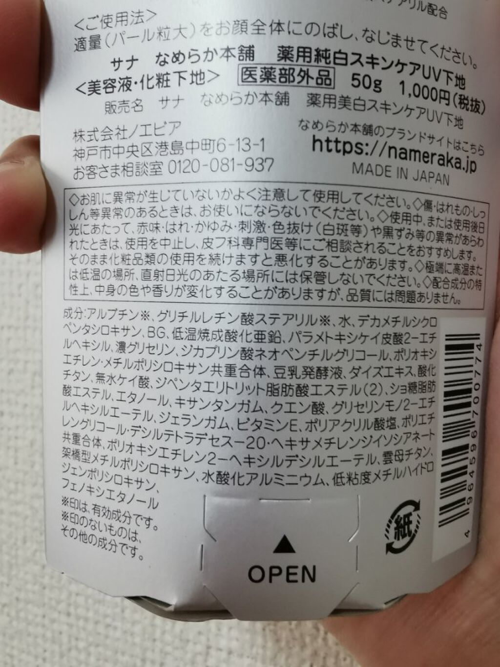商品詳細情報なめらか本舗 薬用美白スキンケアUV下地
