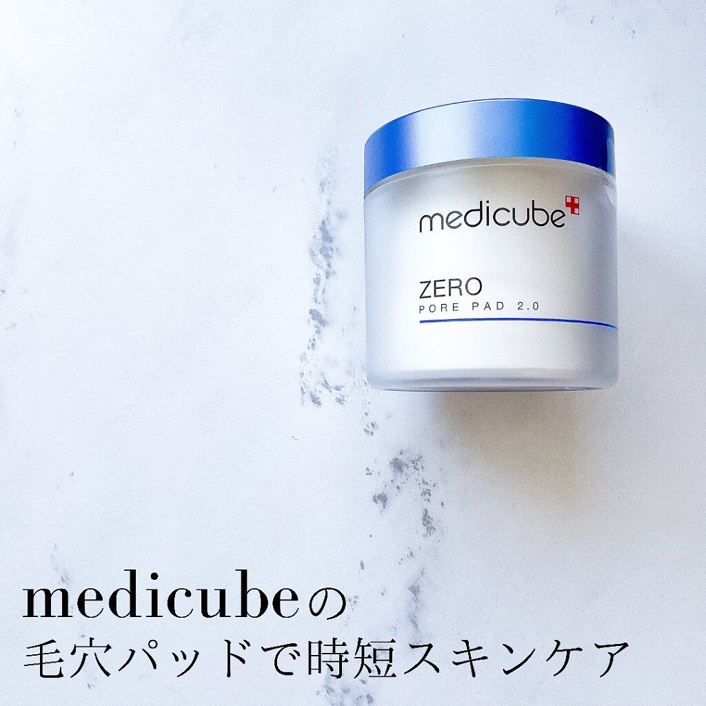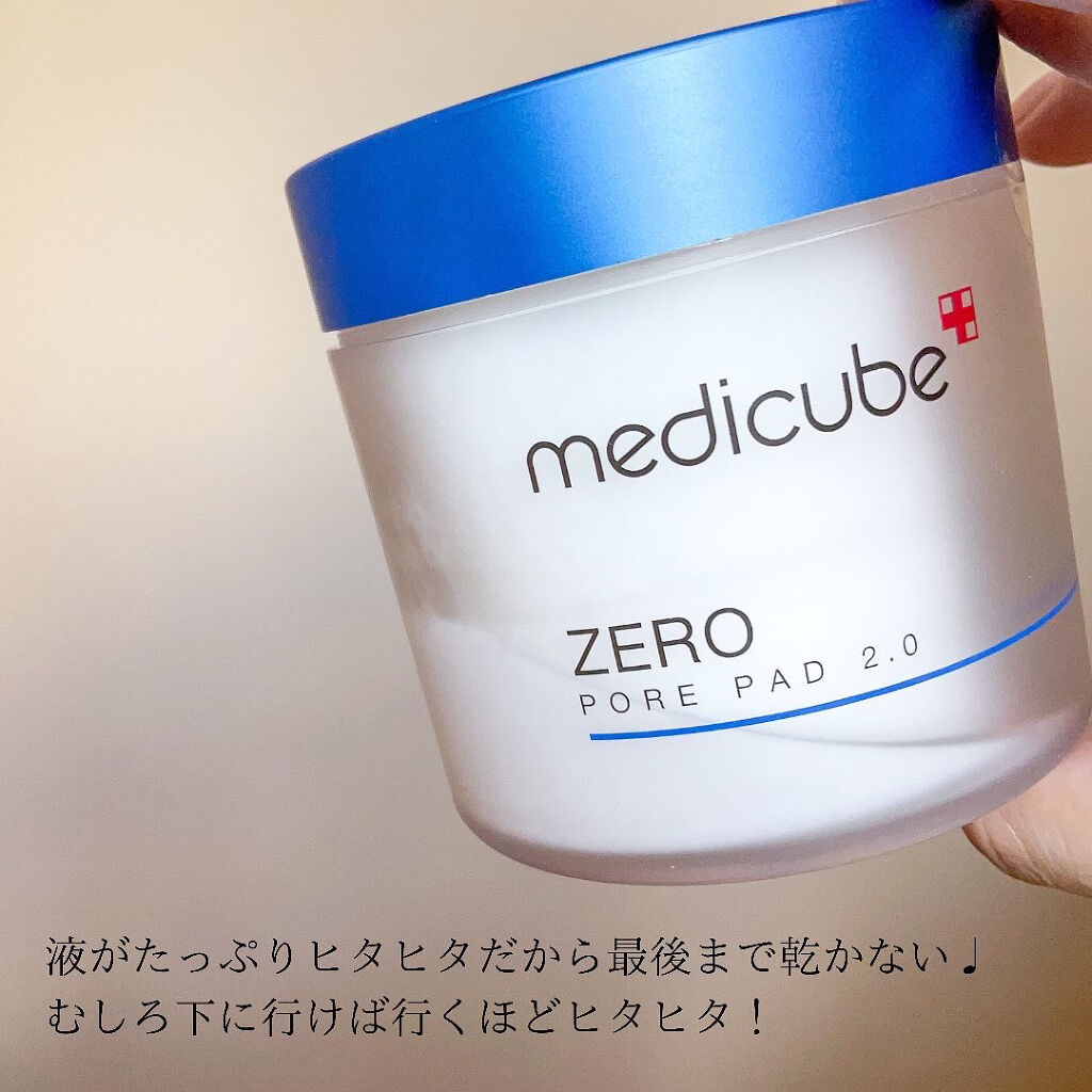 メディキューブといえば ゼロ毛穴パッド❗️と思うくらい有名な商品だよね💙 中身は液がヒタヒタのパッドがなんと70枚も入ってる‼️ 凹凸面とソフト面のある爽やかな香りのするパッド💙 手軽にケアできて刺激も感じることなくよかったです😊