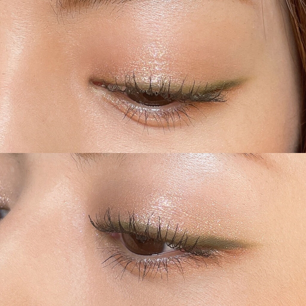 全体的に淡めです! イエベ向きな黄色みのあるブラウン系🤎 シマーなラメが可愛すぎる!! 密着度の高いラメでポンと乗せるだけで キラッキラ✨✨ 粉飛びもしないです! 発色はいいですが淡いので 初心者さんでも使いやすい!!!