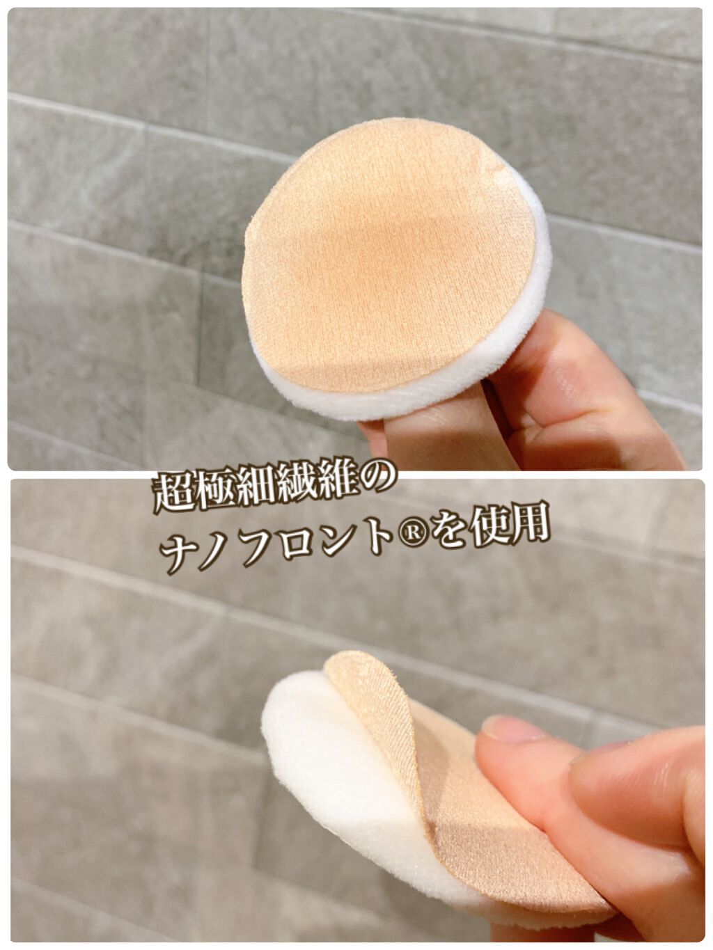 印象的な赤のパクト。 半透明感がかっこかわいい。 パフを手に取ってみると、ふかふか。 パフの先が尖っているから、細かいところも簡単に塗れるのが便利。 肌にのせてみると、しっとりジュワっと感があるのに、すぐに肌に密着。 カバー力もなかなか。 濃いシミや赤いニキビ跡は完全には消えないけど、色むらなんかは綺麗にカバー。 なのに自然。 厚塗り感が出ないから、元から肌が綺麗な人に魅せてくれるの。 つや感も良い感じ。 韓国系クッションファンデにありがちなテカテカにならないで、自然なツヤ。 そして1番のお気に入りポイントが崩れにくさ。 マスクをしてても汗かいてもキレイ。 多少のメイク落ちはあるけど、クッションファンデ特有のドロドロ感が無いの。