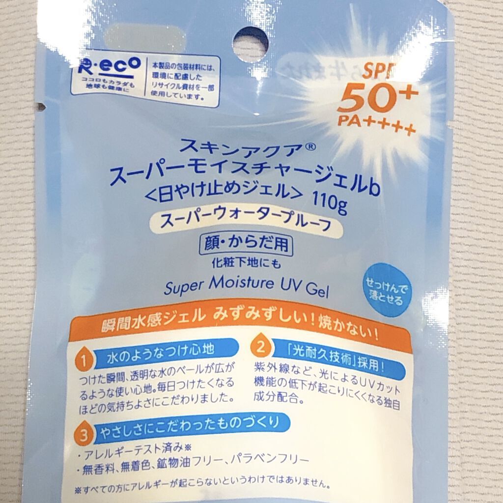 「スキンアクアスーパーモイスチャージェル」✔️3種のヒアルロン酸(うるおい成分)配合 ✔️スーパーウォータープルーフ✔️顔・からだ用、化粧下地にも✔️無香料、無着色、パラベンフリー、鉱物油フリー✔️SPF50+/PA++++/UV耐水性★★...