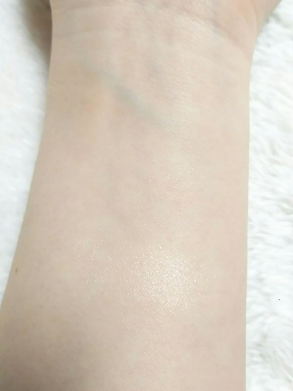 カメラの性能が悪く勝手に背景の色を変えてしまうので少し伝わりにくいかもしれませんが、とても綺麗なブルーです。 かわいいです。 ちょっとためらう色かもしれませんが、実際ちょっとつけると不思議な透明感が出ますので普通の色の他に一本こういうのがあると便利です。