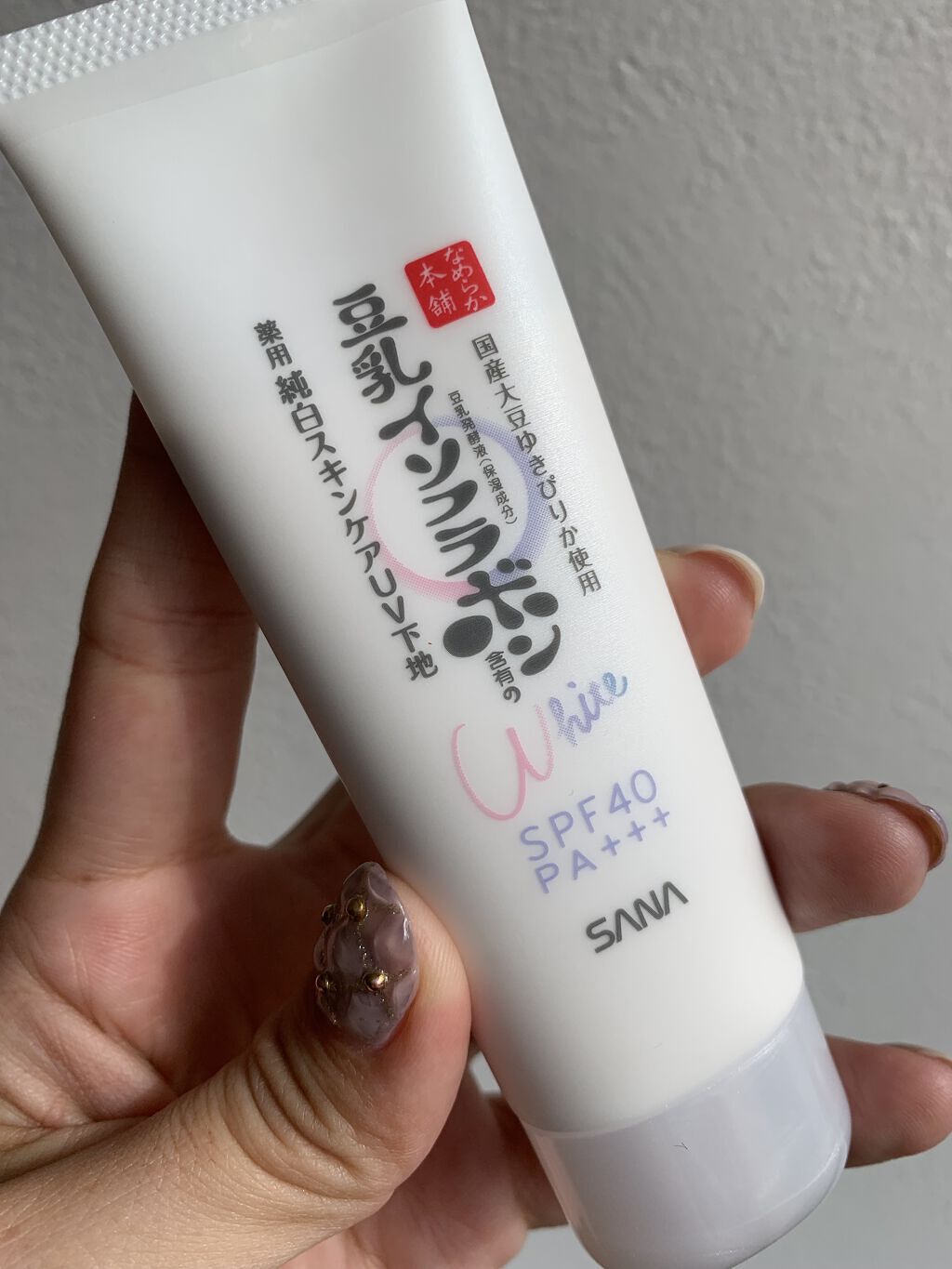 - <薬用美白スキンケアUV下地> 豆乳の美白スキンケアUV下地。肌荒れ&ニキビ予防しながら美白!メラニンの生成を抑え、シミ・そばかすを防ぎます。トーンアップ(メイク効果による)&皮脂崩れ防止。化粧水・美容液・乳液・クリーム・UVカット・化粧下地の1本6役。SPF40・PA+++。[販売名:サナ なめらか本舗 薬用美白スキンケアUV下地]