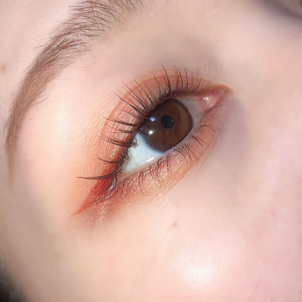 よくパレットのなかで明るいカラーをベースにまぶたに広く塗ることが多いのですが、パール感のあるカラーを避ける🙆♀️! パール感たっぷりの明るいカラーは涙袋に使うぐらい光を集めてぷっくり見せてくれるので、まぶたに広く使うと腫れぼったく見えがち😓 目元を明るくみせてくれたり、次に使うアイシャドウをぼかしやすくしてくれるけど、すっ飛ばしてメインのカラーを塗っちゃう✊🏻❤️🔥 涙袋にはたっぷり塗ってぷっくり見せる🙆♀️💕 シルキースフレアイズのマットタイプはすごく優れているな〜と感じました☺️💗 赤やオレンジなどは、入れすぎると腫れぼったく見えやすいので、見せたいカラーは下まぶた目尻にのせて色をたのしむ♡♡ パール感なしの透けマットだけじゃ物足りない… そう感じさせない華やかなラメが左上に入っているので黒目上と涙袋にのせるとすごく可愛い仕上がりに😍! 厄介な左右差のお陰でマットアイシャドウが好きになりました😌💕