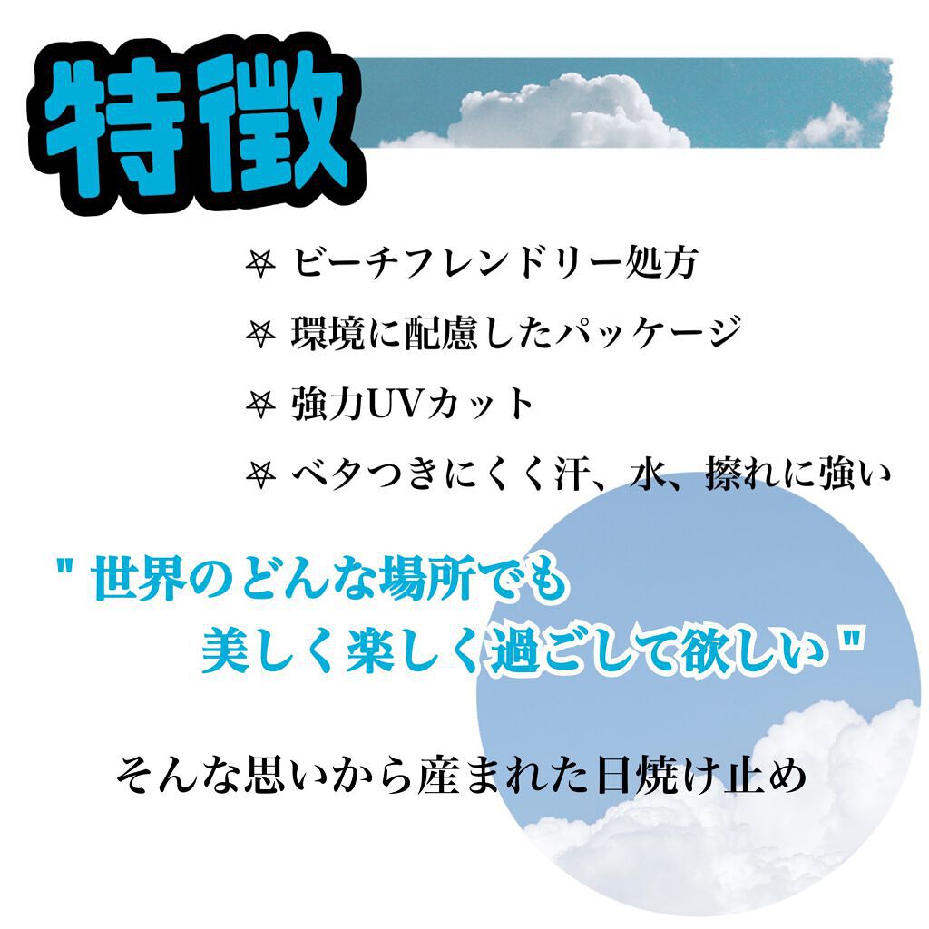 SPF50+・PA++++、きれいな肌仕上がり、 べたつきにくい設計を両立させた製品が完成しました。 クリーミーなテクスチャで、 するすると伸びていき、肌なじみもよく 日やけ止め特有の油膜感が感じられませ。 汗・水・こすれに強い(バッグ、服、マスク、タオル等のこすれに強く、落ちにくい)ので、体だけじゃなく、顔にも使いたいと思います。