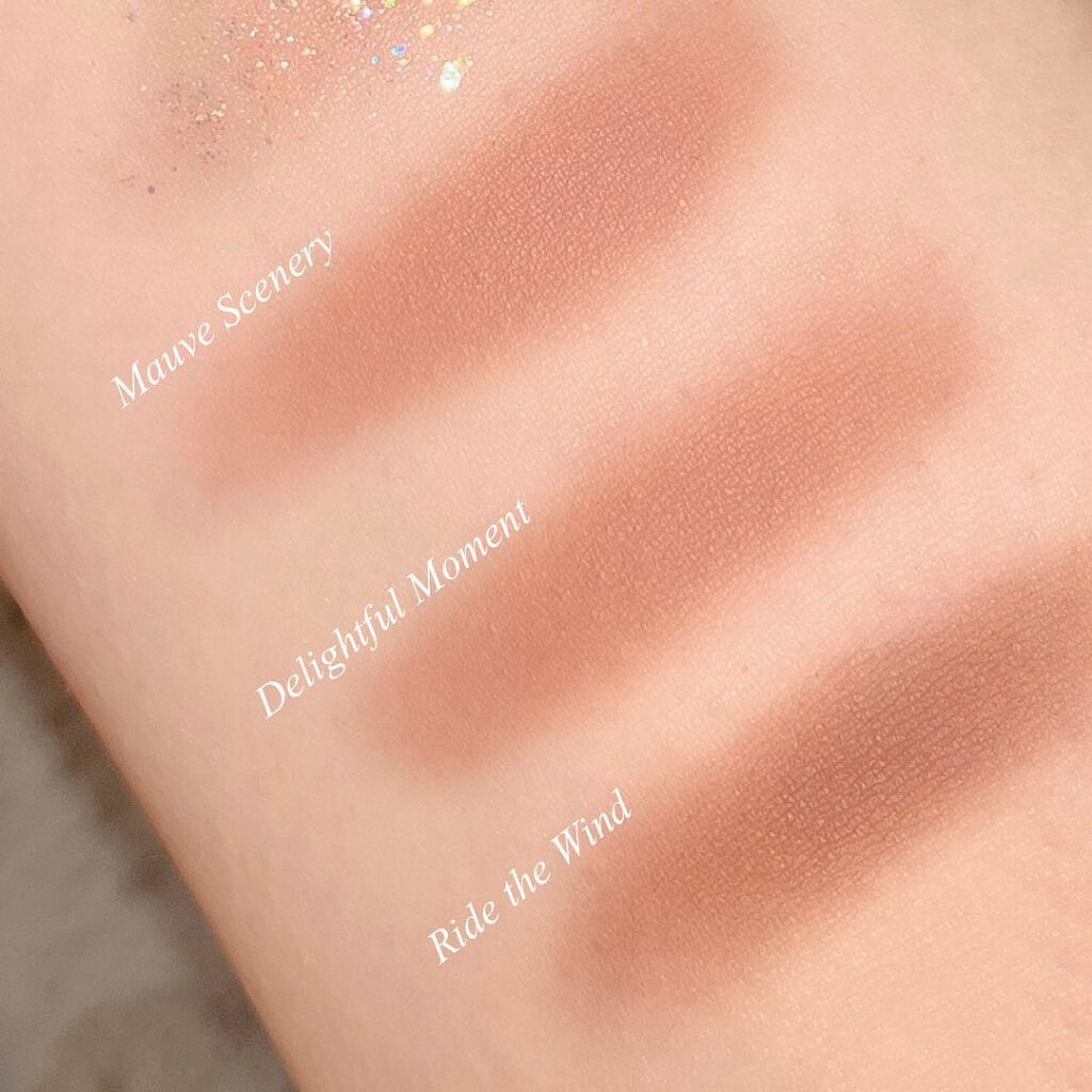 rom&nd 粉がふわっっふわでぼかしやすい グラデーションが簡単なので忙しい日はササッと塗れちゃいます◎ 白系のラメがアクセントになって 目頭や涙袋に塗ると印象がだいぶ変わります◊*゚ URGLAM 元々キャンメイクパーフェクトマルチアイズ03に似てるなぁと思って買ったアイシャドウ🤭 左上のカラーだけしっとり系の質感になっているのでベースとして塗ると良いです! 100均コスメによく見られる粉飛びがあります🥲 発色が弱めなので重ね塗り必須✍️ブラウンカラーが2色入っているのでアイブロウにも使えるのがrom&ndと差をつけるポイント👍 比べてみるとやっぱりrom&ndの方が粉質が良くて色の調節もしやすいので、お値段が少し高めなだけあるなぁって感じ◎ アイブロウに使える便利さと圧倒的な安さを考えるとURGLAMも全然負けてないと思います꒰( ˙ᵕ˙ )꒱これで220円はおかしい…🤦🏻♀️