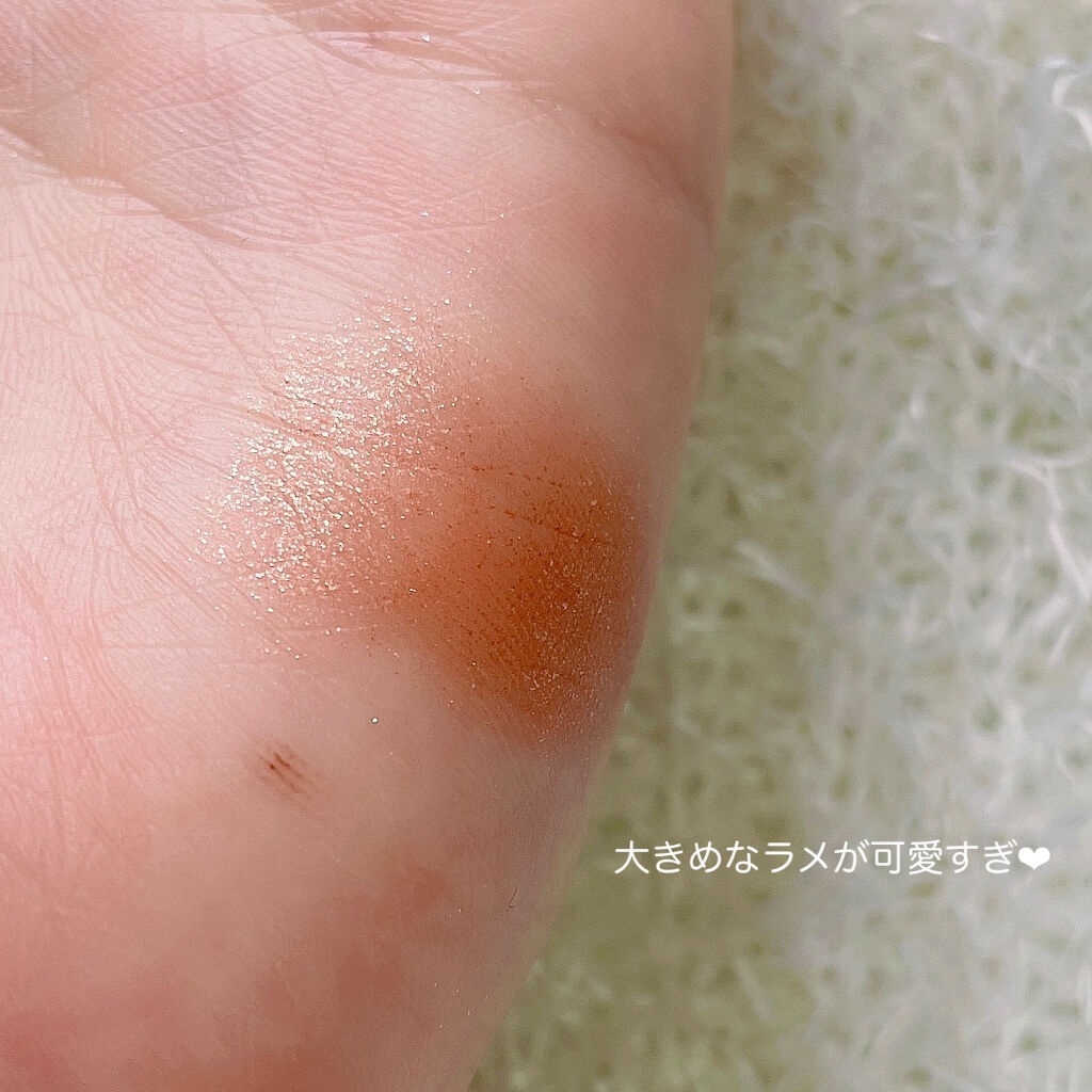 このアイシャドウは発色は薄めだけど その代わりにラメが凄くて!! なのでオレンジメイクしたいけど なかなか挑戦出来ない方とかにも◎ オレンジを単体で塗れば可愛い印象に ブラウンを加えれば大人っぽい印象に とっても可愛いアイシャドウなので 是非チェックしてみてください🍯💗