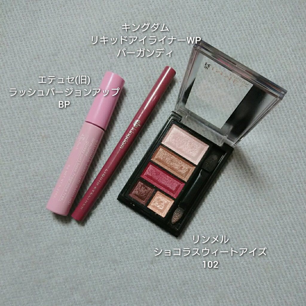 バレンタインにピッタリなカラー♡ #リンメル #ショコラスウィートアイズ 015ストロベリーショコラ ブラウンとピンクすぎないピンクがチョコっぽく仕上がりお気に入りです!! このパレットは、甘い香りがするのでメイク中から気分もバレンタイン(笑)