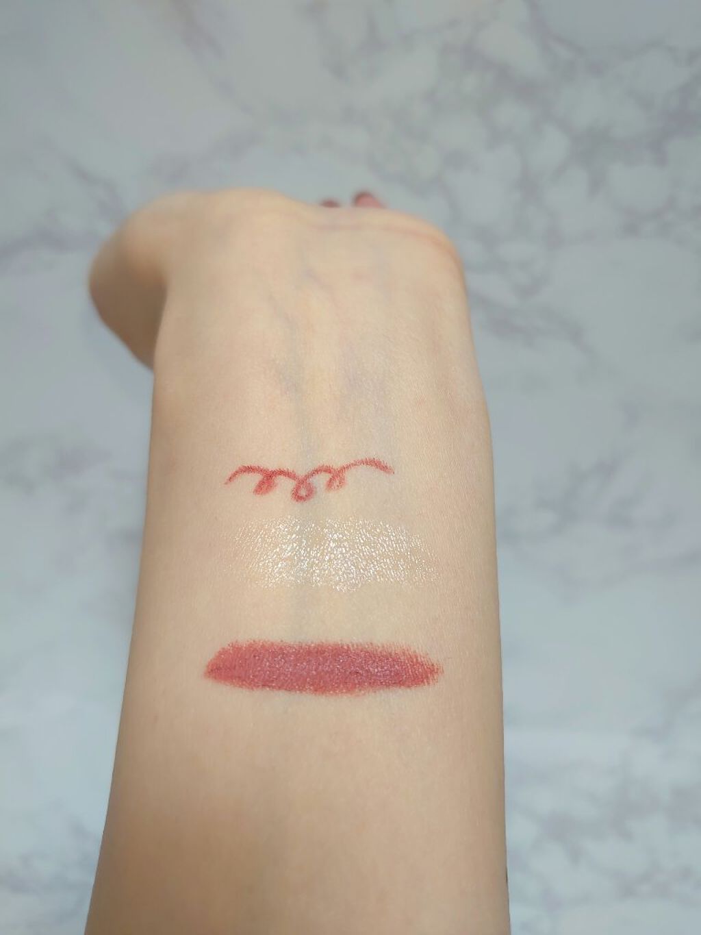 まず伸びが凄く良いので出し過ぎ注意です💡 肌が重たくない事にビックリ😲❣️ 塗りたては艶々して見えるけどセミマットって感じかな🤔? 付け心地が軽くて肌が綺麗に見えるし、赤味も毛穴もカバーしてくれるのは良い😍💗 テクスチャーは硬めかと思いきや滑らか☝ チークに使うときは指で取ってポンポンと叩き、馴染ませました😍🤍 リップはブラシを使って塗ったのですが、艶が綺麗だしティッシュオフしてもほんのり色が残っている🌼 ヘルシーピンクは可愛い系の色かな😘 ライヴリーローズウッドの方はクールな感じに仕上がると思った😋💚 パケもガラス容器で高級感がある😌❤️