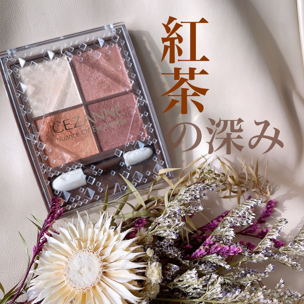 透け感がお洒落なキャメルカラー 【CEZANNE ニュアンス オン アイシャドウ】 こなれ感のある洗練された目元に仕上がるパレット🎨 4色ともパールをリッチに配合した処方になっており、艶やかな透明感のあるサテンのような発色。 色を重ねてのせても濁ることなく絶妙なニュアンスカラーで綺麗!色々なアイメイクが楽しめるアイシャドウですね✨