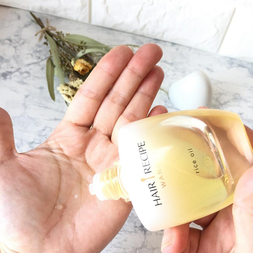 中には本物のお米がin!! 1000粒のお米から抽出できるライスオイルは、たったの1滴。 日本人の髪にピッタリなこの貴重なオイルは、パサつきやうねりにおすすめ 内側から自然な輝きを放つ、すっぴんツヤ髪へ ボトルを傾けて、手のひらにボトルの口を当てて出します。 傾けるだけでは落ちてこないで、出し過ぎにならないところが◎ サラサラ〜とのびて、少しとろっとしたテクスチャーです。 髪の毛になじませやすく、軽い付け心地です♪ 100%ピュアライスオイルだから、これ1つで地肌、手、ボディにも使えて全身保湿ケアに◎ ほんのりオレンジのいい香り〜🍊 パサつきもうねりも気になるから、使っていきたいです♪