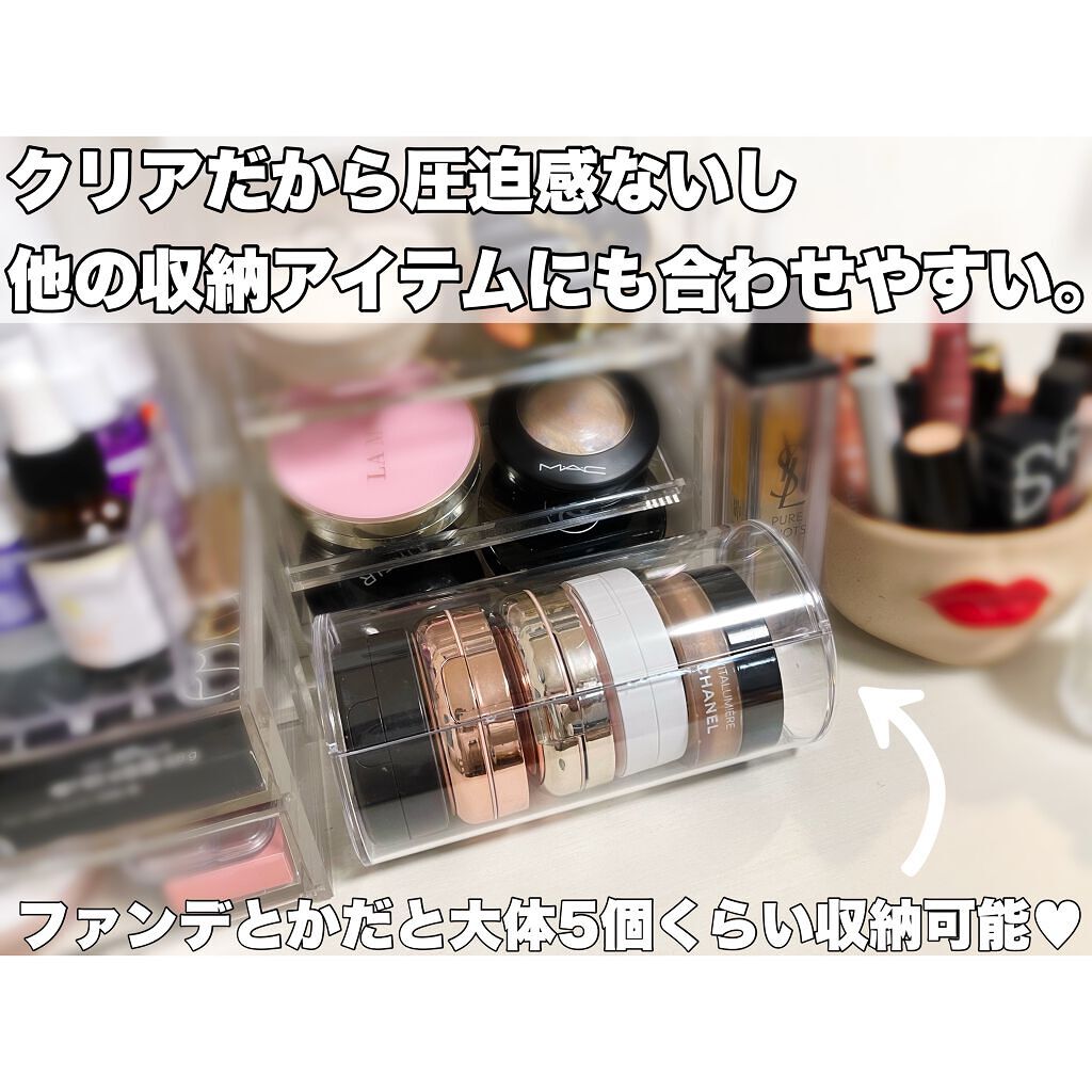 ダイソーにはこれ以外にもリップ収納にぴったりな収納ケースが売ってるんだけど、このケースの魅力は収納力&フタ! ケース1つでリップが18本も入ります◎ こちらはメイクブラシを1本1本立てて収納することができるケースです✨ 斜めにした状態でキープすることができるので、ブラシが取り出しやすくとっても便利。 この収納ケースは大好きすぎて4つ持ってる😂 とにかくこのケースは収納力が抜群。 特に4色のアイパレの収納におすすめで、1つで30個ぐらいは入るから、息を吸うようにアイシャドウ買う私にはマストアイテム。