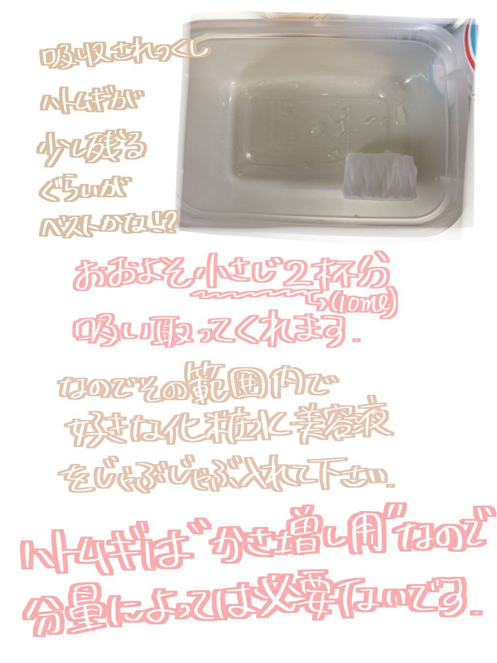 | 小さいので旅行に良い、カップ付き化粧水に浸けられる、大きめで顔をしっかりカバー | 詳細を見る |