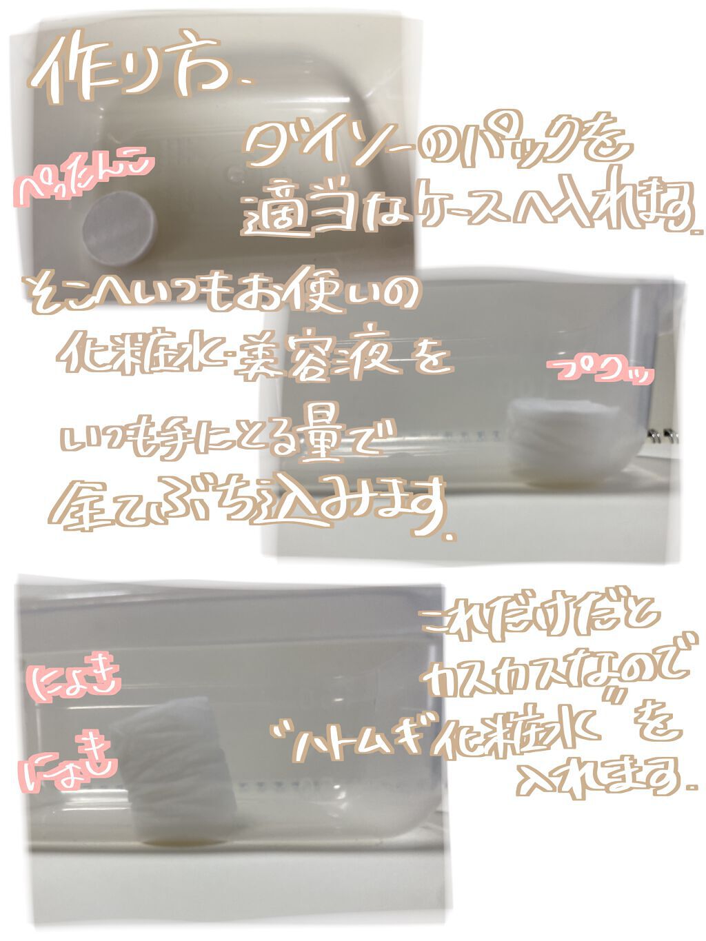 たっぷり水分補給できる高浸透処方✨ 天然保湿成分 「ハトムギエキス」配合 コスパが良いのでたっぷりと惜しみなく使える✨ ダイソーに売ってあるフェイスシートにたっぷり含ませてパックするのが好き♡