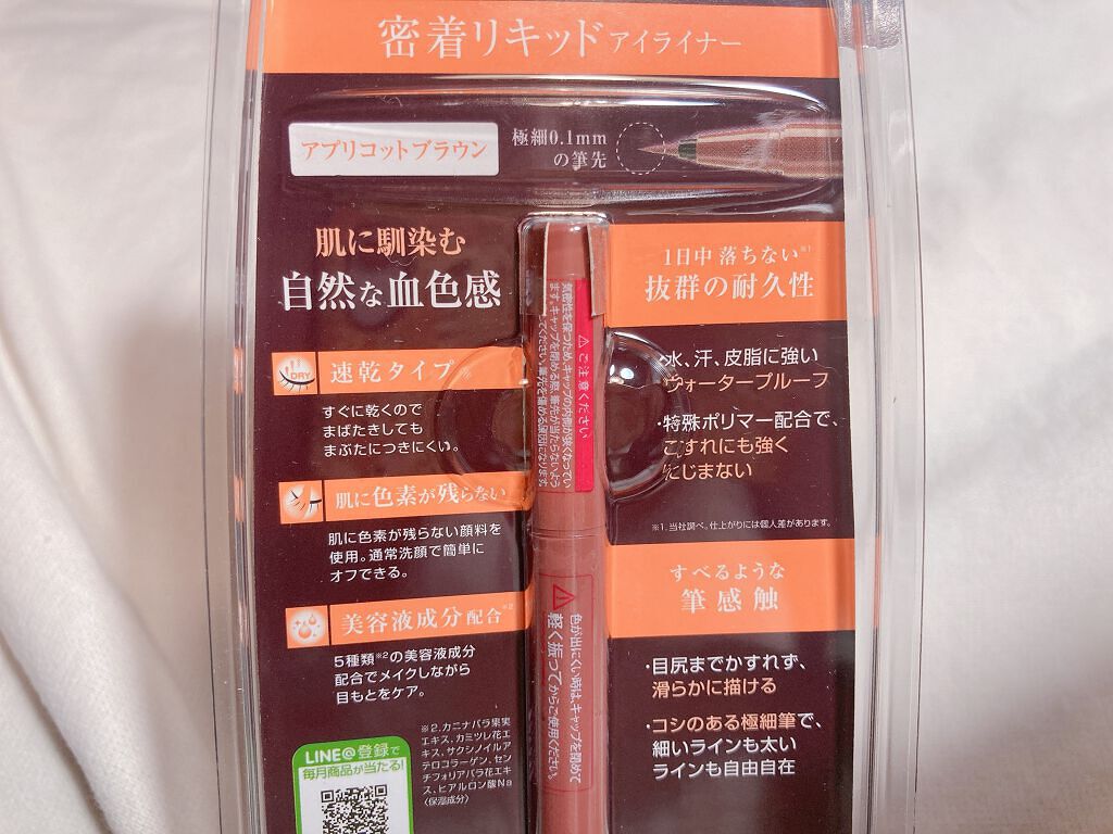 - 筆先までずっとなめらか、目尻で感動するリキッドアイライナー。 必要な量が肌にのる新設計で、まぶたの上をすべるような、滑らかな描き心地。しなやかでコシのある筆が、筆圧のコントロールを容易にし、太いラインも細いラインも思い通りに仕上げます。水、汗、涙に強いウォータープルーフタイプなのに、通常洗顔で簡単オフ。肌に色素が残らない顔料を使用。5種類の美容液成分を従来品の200%配合し、メイクしながら目元ケアまで。 ●ブラウンブラック ※2020年9月12日 バラエティショップ先行発売 ●漆黒ブラック ※2020年12月頃発売予定 ●ナチュラルブラウン ※2020年12月頃発売予定 ●シフォンブラウン 「毎日メイクに透明感と抜け感」 ブラウンでも、グレーでも、ベージュでもないニュアンスカラー。 自然な印影で素の目元を際立て、頑張りすぎない、ふんわりとした目元に。 ●アプリコットブラウン 「じゅわっと血色感。 肌に馴染むおしゃれカラー」 温かみのあるアプリコットがじゅわっと滲む血色感を目元に演出。 肌馴染みが良いので、カラーライナーに抵抗がある方もブラウンの延長線上で楽しめる、使いやすい色味です。 ”ちょっとオシャレ”な空気感を演出するカラー。 ●ピンクショコラ アイライナー 「ピンクが溶け込む濃厚ブラウン」 肌馴染みが良く、目元にじんわり血色感をプラス。 さりげなく女性らしさが加速するようなカラー。 ●ピスタチオラテ (2022年7月29日(金)発売) 「“目尻”に抜け感アクセント」 肌に馴染むのに映える絶妙なグリーン。 トレンドカラーに“くすみ”と“抜け感”をプラスしたまろやかな発色。 ●マスタードブラウン 「“イエロー”が揺れる、大人の洒落色」 (2022年7月29日(金)発売) まるで太陽のような暖かさを感じる新しいブラウン。 ほんのり感じるイエローでメイクが一気に垢抜ける稀有な色。 ●シフォンピンク(2023年2月10日発売) 「ふんわり柔らか"まろみピンク"」 甘くなりすぎない青みニュアンスで目元の透明感UP。 目元を引き締め、ピンクメイクにありがちな腫れぼったさを解消。 ●ミルクカプチーノ(2023年4月21日発売) まろやかな深みの“優しい締め色” どんなメイクにも合わせやすいカラー。 自然な陰影でさりげなく目幅を拡張します。 ●グレーカシミア(2023年10月1日発売) ブラウンがほんのり溶け込んだ、暖色グレー まろやかな発色で、パーソナルカラーを問わず肌に馴染む 目元の陰影になりすまし、抜け感と目力を欲張りに叶える ●ダークフィグ(2024年6月1日発売) するする”なめらか。描きやすいのに、落ちにくい。 クッキリ可愛いほの甘ダークブラウン ●ピーチモカ(2024年8月1日発売) ふわっと自然に盛れる“桃色ブラウン” ほんのり血色感で目元にうるみ感を演出 ●スターダストブラウン(2024年12月11日発売) キラッと繊細に輝く''星屑ブラウン'' 透け感のあるダークブラウンの色味とラメの輝きが、目元に艶のある立体感を演出 ●チャコールモカ(2025年4月10日発売) 目元を締める''深みグレージュ'' 黄みや赤みに偏りすぎない絶妙な色設計で、自然に目元を強調