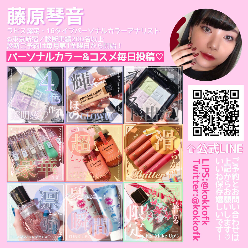 このバームはワセリンのようなとにかくうるうるの透明ツヤ感で、唇に負担なく薄づきの発色です💓 やや黄みの柔らかいヌードベージュ 明るさが得意なイエベ春におすすめ! 明るく澄んだ青みピンク 明るさが得意なブルベにおすすめ! やや黄みの澄んだコーラルレッド 2ndブルベのイエベ春におすすめ! 鮮やかで澄んだ青みレッド 鮮やかさが得意なブルベにおすすめ! 柔らかいくすみベージュブラウン 柔らかい色が得意なイエベにおすすめ! やや青みの柔らかいくすみレッド 柔らかい色が得意なブルベ夏に! しっかり青みのモーブピンク 1st2ndブルベにおすすめ!