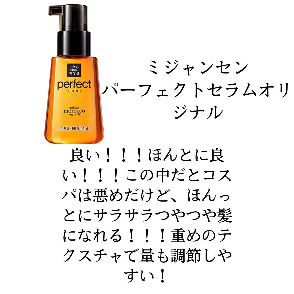 私的BEST31位 miseensceneパーフェクト セラム オリジナル2位 &honeyディープモイスト ヘアオイル3.03位 ルシードエルオイルトリートメント #EXヘアオイル 私は重めでしっとり系のヘアオイルが好きです!是非参考にしてみてください😸♡