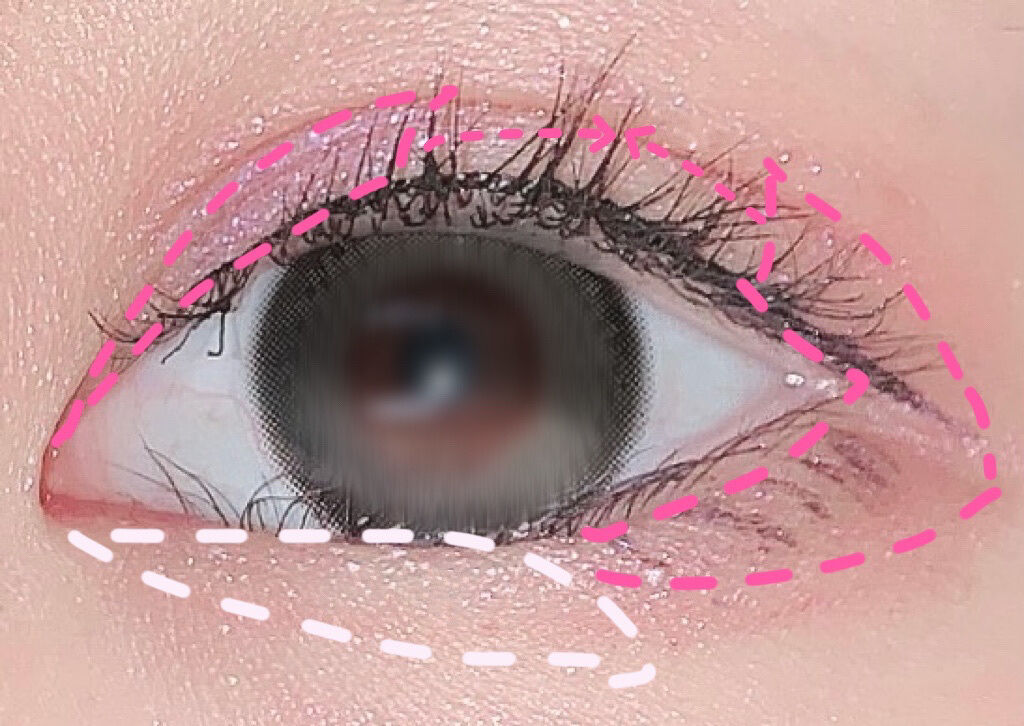 アイライナーはピンクや赤などの色を使用することで擬似粘膜っぽい仕上がりになり蒙古襞が気にならなくなります✨ 蒙古襞の内側は濃く太く塗っても大丈夫ですが普通にしてても見える部分は細めに目の形に沿って塗るのが自然に仕上がるポイントです🎀 長さはワンホンの方だと地雷盛りラインに繋げて描く方もいらっしゃいますが慣れるまでは蒙古襞と黒目の端の中間くらいまでを目安に塗るといいと思います🌸