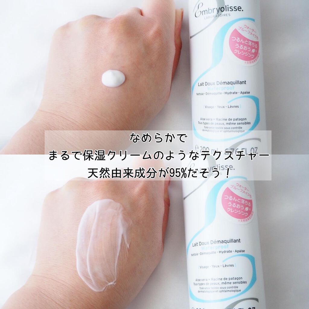 - 保湿成分を豊富に含んだ処方の「アンブリオリス ジェントル クレンジングミルク」は肌にうるおいを与えながら、肌表面の汚れやウォータープルーフメイクも落とします。乳液のようなやわらかな使い心地でしっとりとした肌に。 1 本で洗顔・メイク落とし・うるおいケア 1. 肌汚れ、外気などによる汚れを除去。 2. マスカラなど落としにくいウォータープルーフメイクも落とし、面倒なダブル洗顔は不要。 3. 保湿効果に優れたミルクで、肌をやわらげ、デリケートな肌もうるおいのあるしなやかな肌へ。 こんな方におすすめ : ・しっかりメイクの方 ・肌に負担をかけたくない方 ・敏感肌(※)を含むすべての肌タイプの方 ※すべての方に肌トラブルがおきないわけではありません。 ※成分・処方はそのままに、2023年5月よりパッケージデザインを順次リニューアル