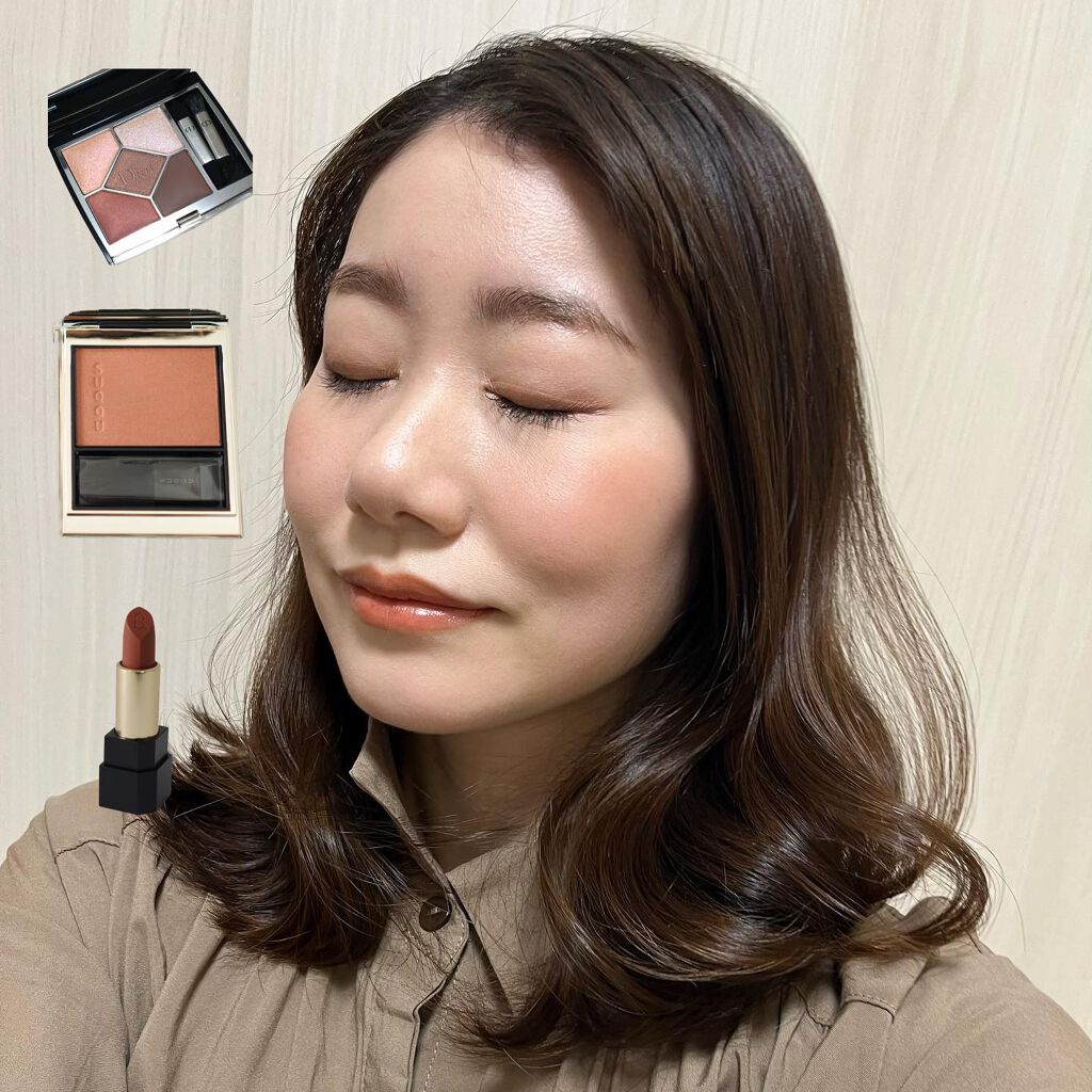 実物見ないで買ったんだけど、手元に届いて見た瞬間「あ、こりゃベスコスだわ」と思った!笑 色も可愛いんだけど、質感が絶妙…! 左上の変光ピンクのツヤ、右上のサラサラ細かい繊細ラメを始め、ツヤとマットがバランスよく入ってて最高💓 写真のメイクは右下のマットブラウンを控えめに他の4色メインで仕上げました! 透明感ある仕上がりで素敵🥺 マットブラウンをしっかり入れれば濃いめにも仕上げられると思う!また色々メイクパターン研究します〜🧐 迷ってる方はぜひ実物を見てみると良いかも!実物を見たらお迎えせずにはいられないハズ💓笑