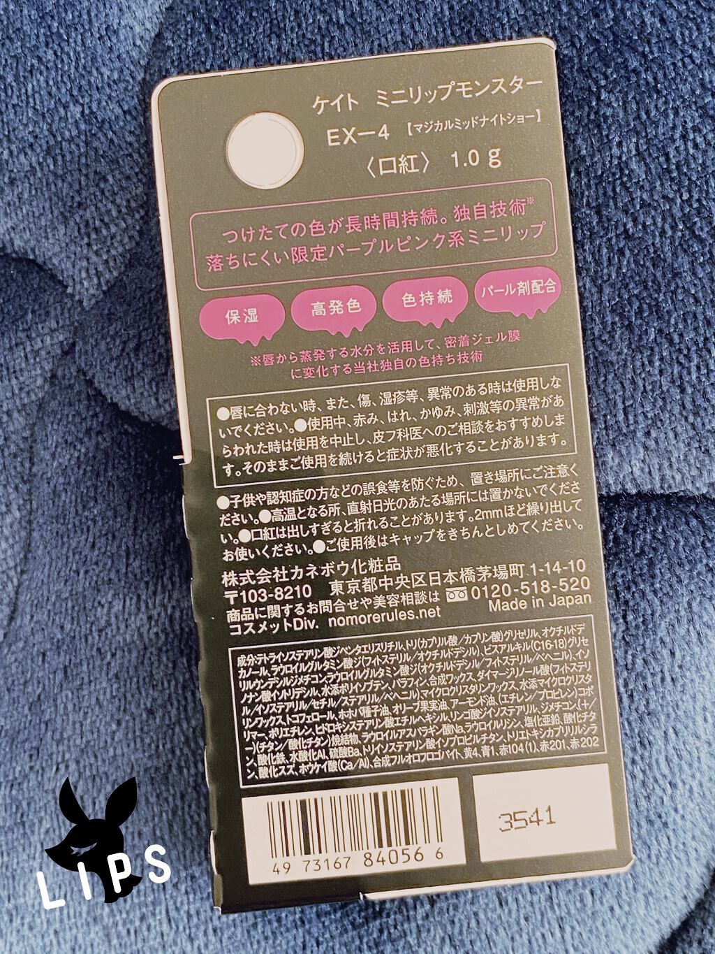 バチゴリ青ラメ💎ブルベのためのEX-4✂ついに買いました!KATEミニリップモンスターEX-4マジカルミッドナイトショー!紫💜に青💙のラメがザックザク入っている4番はブルベ(特に冬)向け!✂#ガチレビュー🧸⸒⸒良い点塗ってみると、自然な紫帯び...