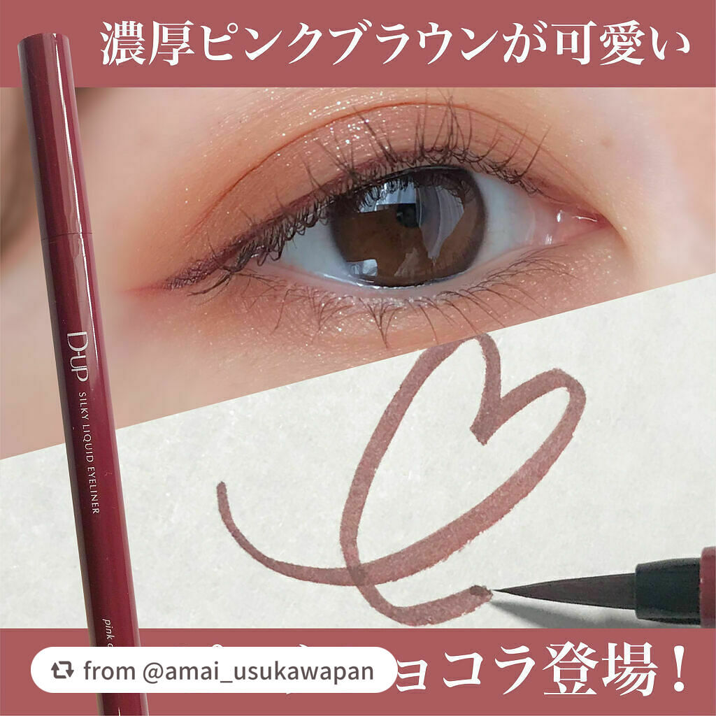 - 筆先までずっとなめらか、目尻で感動するリキッドアイライナー。 必要な量が肌にのる新設計で、まぶたの上をすべるような、滑らかな描き心地。しなやかでコシのある筆が、筆圧のコントロールを容易にし、太いラインも細いラインも思い通りに仕上げます。水、汗、涙に強いウォータープルーフタイプなのに、通常洗顔で簡単オフ。肌に色素が残らない顔料を使用。5種類の美容液成分を従来品の200%配合し、メイクしながら目元ケアまで。 ●ブラウンブラック ※2020年9月12日 バラエティショップ先行発売 ●漆黒ブラック ※2020年12月頃発売予定 ●ナチュラルブラウン ※2020年12月頃発売予定 ●シフォンブラウン 「毎日メイクに透明感と抜け感」 ブラウンでも、グレーでも、ベージュでもないニュアンスカラー。 自然な印影で素の目元を際立て、頑張りすぎない、ふんわりとした目元に。 ●アプリコットブラウン 「じゅわっと血色感。 肌に馴染むおしゃれカラー」 温かみのあるアプリコットがじゅわっと滲む血色感を目元に演出。 肌馴染みが良いので、カラーライナーに抵抗がある方もブラウンの延長線上で楽しめる、使いやすい色味です。 ”ちょっとオシャレ”な空気感を演出するカラー。 ●ピンクショコラ アイライナー 「ピンクが溶け込む濃厚ブラウン」 肌馴染みが良く、目元にじんわり血色感をプラス。 さりげなく女性らしさが加速するようなカラー。 ●ピスタチオラテ (2022年7月29日(金)発売) 「“目尻”に抜け感アクセント」 肌に馴染むのに映える絶妙なグリーン。 トレンドカラーに“くすみ”と“抜け感”をプラスしたまろやかな発色。 ●マスタードブラウン 「“イエロー”が揺れる、大人の洒落色」 (2022年7月29日(金)発売) まるで太陽のような暖かさを感じる新しいブラウン。 ほんのり感じるイエローでメイクが一気に垢抜ける稀有な色。 ●シフォンピンク(2023年2月10日発売) 「ふんわり柔らか"まろみピンク"」 甘くなりすぎない青みニュアンスで目元の透明感UP。 目元を引き締め、ピンクメイクにありがちな腫れぼったさを解消。 ●ミルクカプチーノ(2023年4月21日発売) まろやかな深みの“優しい締め色” どんなメイクにも合わせやすいカラー。 自然な陰影でさりげなく目幅を拡張します。 ●グレーカシミア(2023年10月1日発売) ブラウンがほんのり溶け込んだ、暖色グレー まろやかな発色で、パーソナルカラーを問わず肌に馴染む 目元の陰影になりすまし、抜け感と目力を欲張りに叶える ●ダークフィグ(2024年6月1日発売) するする”なめらか。描きやすいのに、落ちにくい。 クッキリ可愛いほの甘ダークブラウン ●ピーチモカ(2024年8月1日発売) ふわっと自然に盛れる“桃色ブラウン” ほんのり血色感で目元にうるみ感を演出 ●スターダストブラウン(2024年12月11日発売) キラッと繊細に輝く''星屑ブラウン'' 透け感のあるダークブラウンの色味とラメの輝きが、目元に艶のある立体感を演出 ●チャコールモカ(2025年4月10日発売) 目元を締める''深みグレージュ'' 黄みや赤みに偏りすぎない絶妙な色設計で、自然に目元を強調