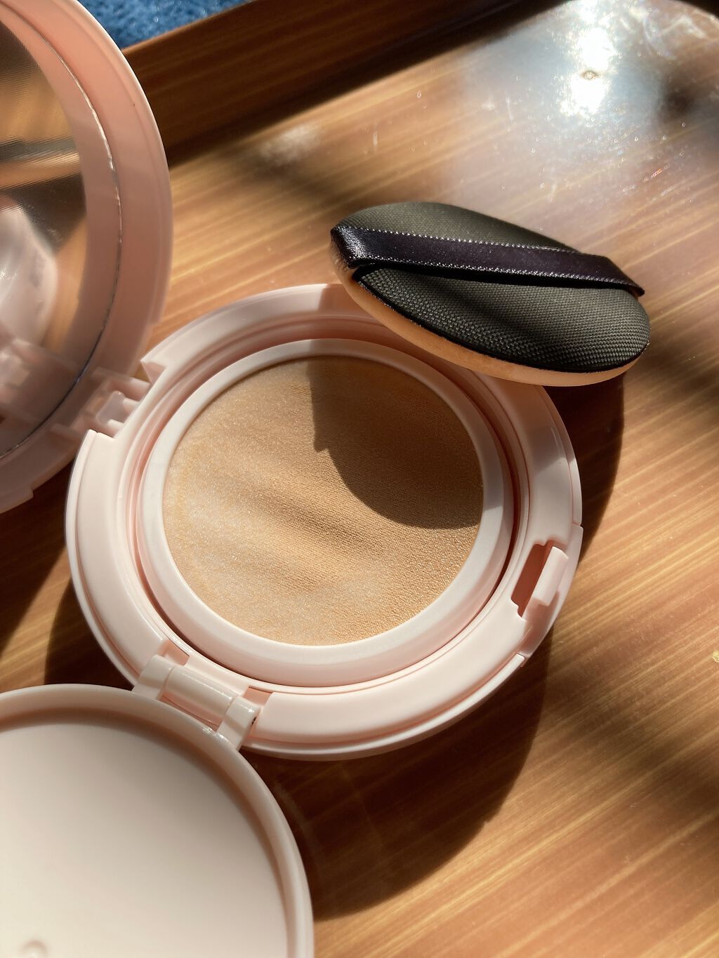肌が透けるような透明感のあるやわらかなマット。 サラふわで軽やか、素肌感が残ります👌♡ 光だけを纏ったような自然で透明感のあるツヤタイプ。 何よりツヤ感がとにかく自然‼️ 付属のパフのふわふわ感、厚みもちょうどよくて使いやすかったです👌♡