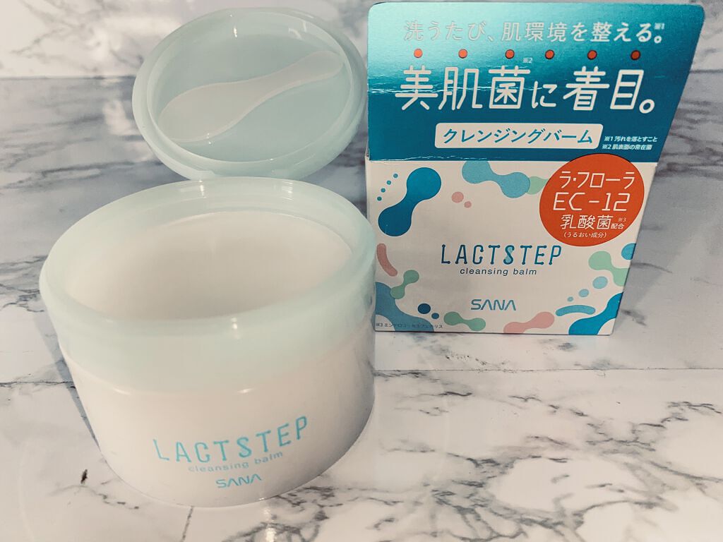 サナ ラクトステップ クレンジングバーム洗うたび、肌環境を整える美肌菌に着目したクレンジングバーム最近よくみる美肌菌✨は、よく分からないけど肌にのせるとじゅわっと溶けてメイクに馴染み、洗い上がりはしっとりするけど、W洗顔不要なだけあってちゃん...