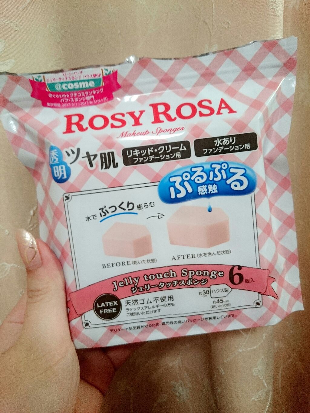 ロージーローザジェリータッチスポンジハウス型 ¥528大好きなロージーローザこのスポンジは使いやすくて何度もリピしてます。濡らして使ってもちゃんとファンデは肌に密着するし、使い終わったら洗えばなんどもつかえるし、旅行先なら安いので使い捨てでき...