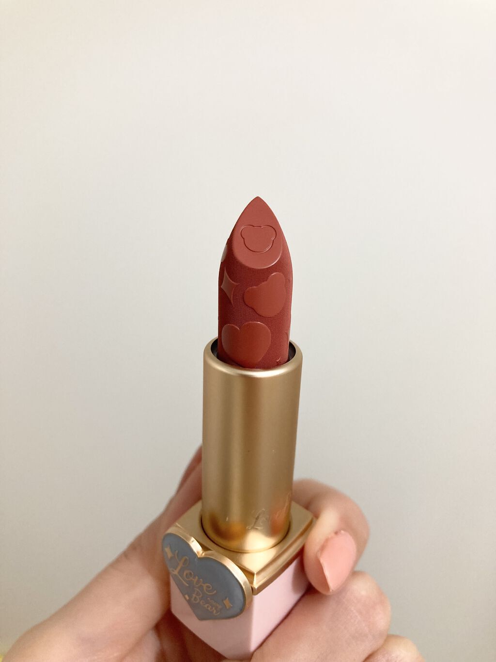 FlowerKnows🌷 Love Bear リップスティック ツヤタイプ ラズベリーベア🧸 パケだけかと思ったらリップ自体の クオリティも高い。 ティントのような持続力。 飲食しても色が残っていました。 ただツヤタイプなので少し シワに入り込みやすいかな? とても可愛くてインパクトのある唇に💋 注意点は香りが強い所です! 私は好きですが苦手な人も多いかも🍫 とてもおすすめです! 何度もいますが!パケが!可愛い!!! これ本当にこのお値段でいいのですか? 他のものも集めたくなる可愛すぎるリップ! ぜひチェックしてみてください💕