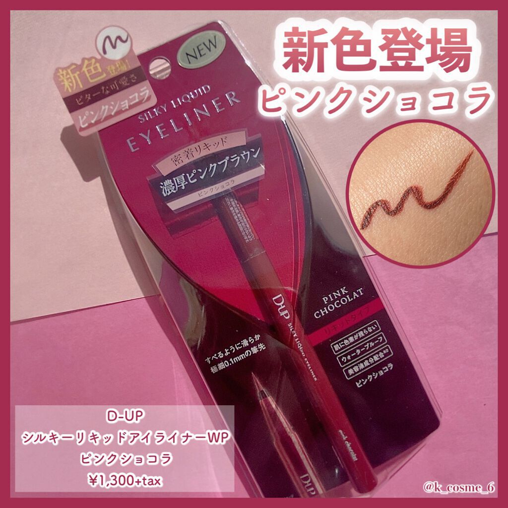 ⋈⋈D-UP/シルキーリキッドアイライナーWPピンクショコラピンクに寄りすぎない絶妙なくすみピンクカラーがお気に入りのアイライナーまぶたになじむほんのり甘いピンクブラウンが可愛い🍫💞ディーアップのリキッドアイライナーは優れた描き心地が推...