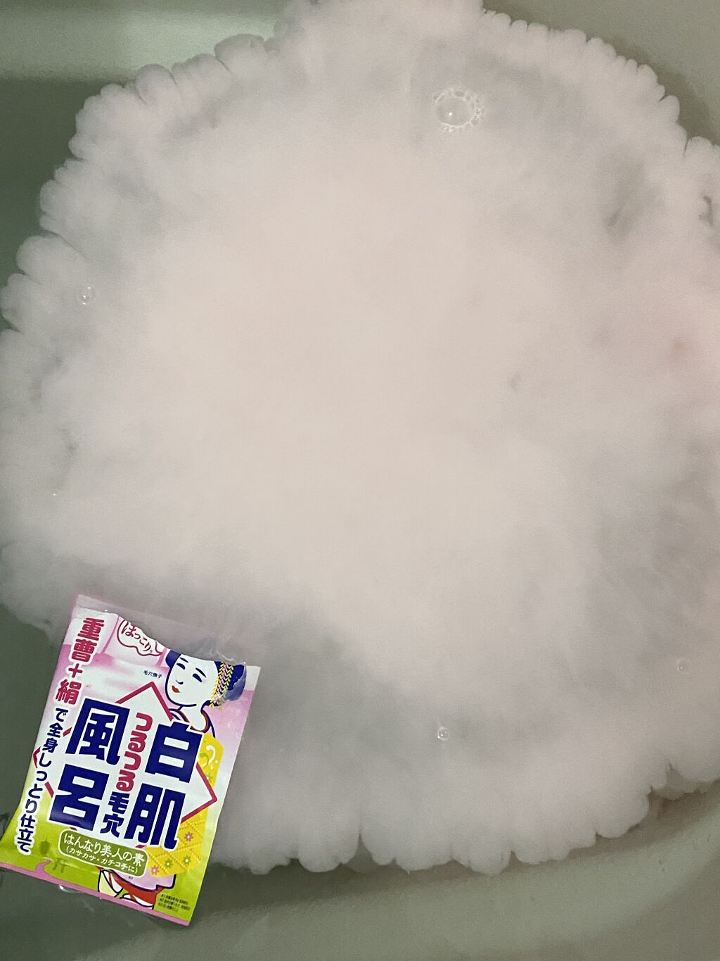 寒い日はお風呂でゆったりくつぎながら、肌も綺麗になれたら最高! そんなずぼらな想いを叶えてくれそうな入浴剤を購入しました😍 パウダーはほんのりピンク色で、お湯に溶かすとミルクのような乳白色に✨ おしろいの香りとのことで、確かに優しい石鹸のような香りがしました☺️ お湯はとろんとなめらかな感触! ピリピリ感など刺激はありませんでした✨