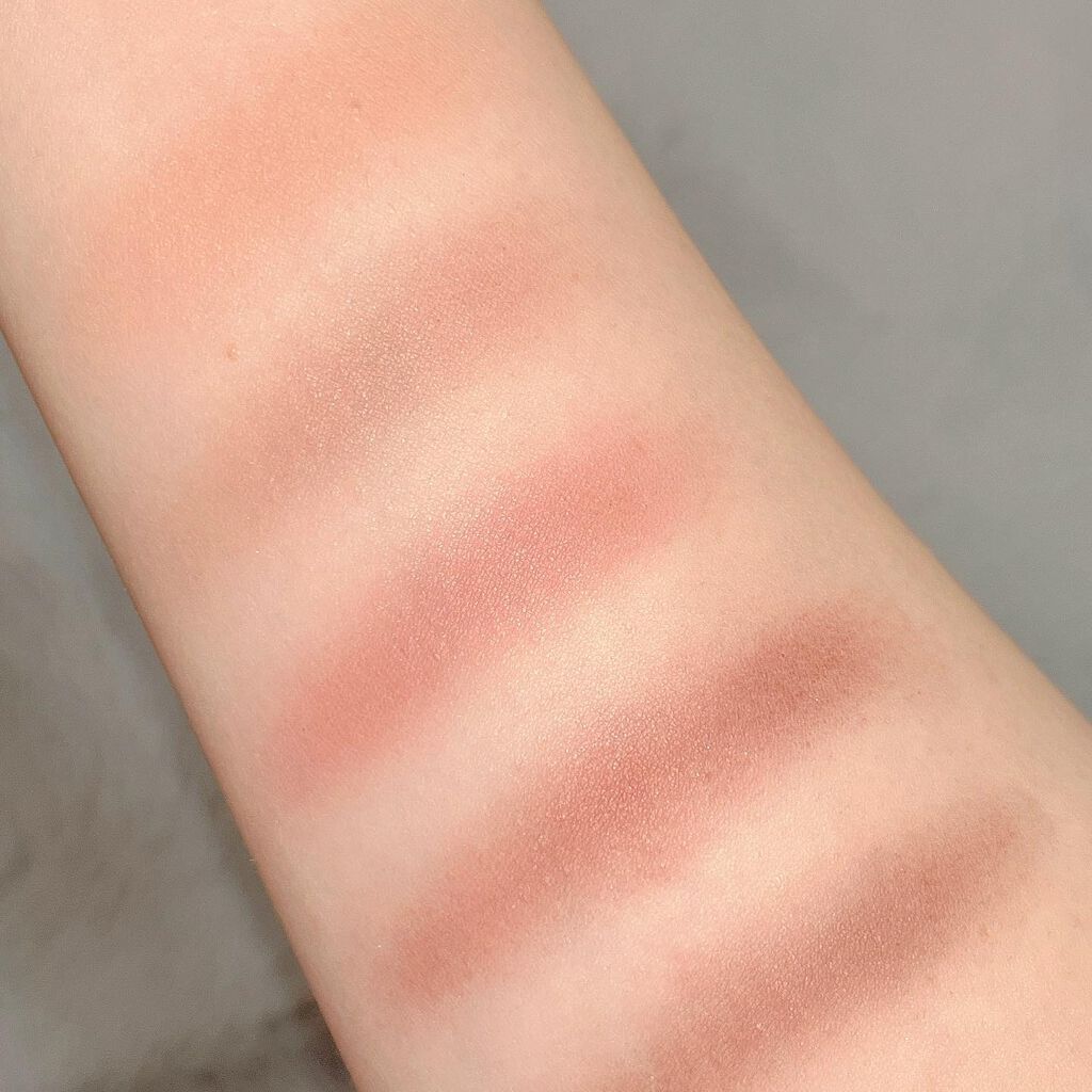 rom&nd 粉がふわっっふわでぼかしやすい グラデーションが簡単なので忙しい日はササッと塗れちゃいます◎ 白系のラメがアクセントになって 目頭や涙袋に塗ると印象がだいぶ変わります◊*゚ URGLAM 元々キャンメイクパーフェクトマルチアイズ03に似てるなぁと思って買ったアイシャドウ🤭 左上のカラーだけしっとり系の質感になっているのでベースとして塗ると良いです! 100均コスメによく見られる粉飛びがあります🥲 発色が弱めなので重ね塗り必須✍️ブラウンカラーが2色入っているのでアイブロウにも使えるのがrom&ndと差をつけるポイント👍 比べてみるとやっぱりrom&ndの方が粉質が良くて色の調節もしやすいので、お値段が少し高めなだけあるなぁって感じ◎ アイブロウに使える便利さと圧倒的な安さを考えるとURGLAMも全然負けてないと思います꒰( ˙ᵕ˙ )꒱これで220円はおかしい…🤦🏻♀️